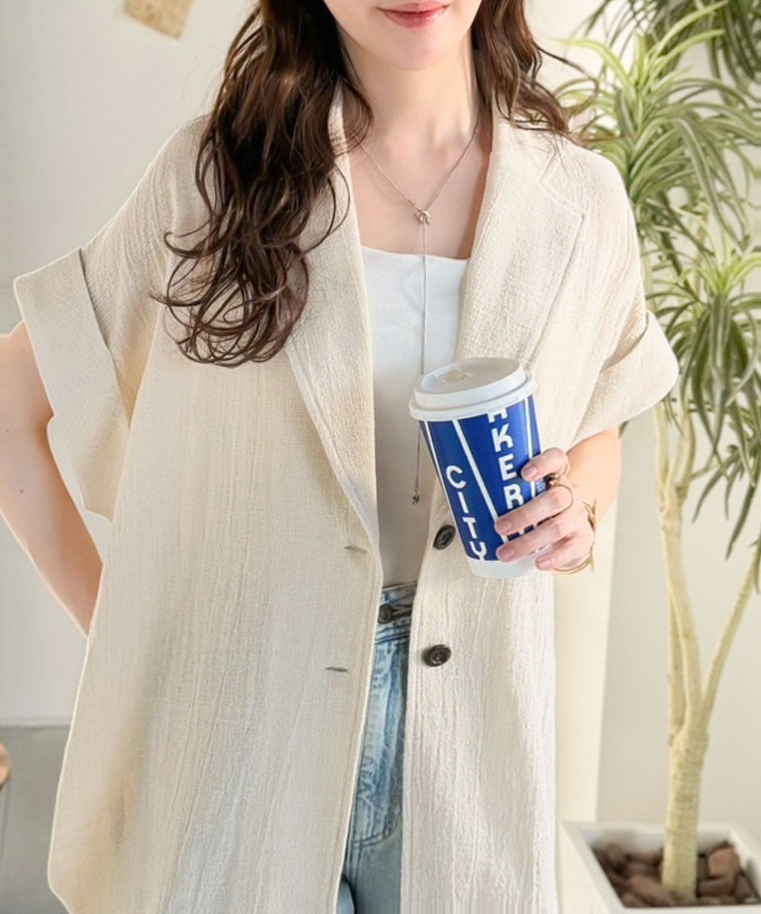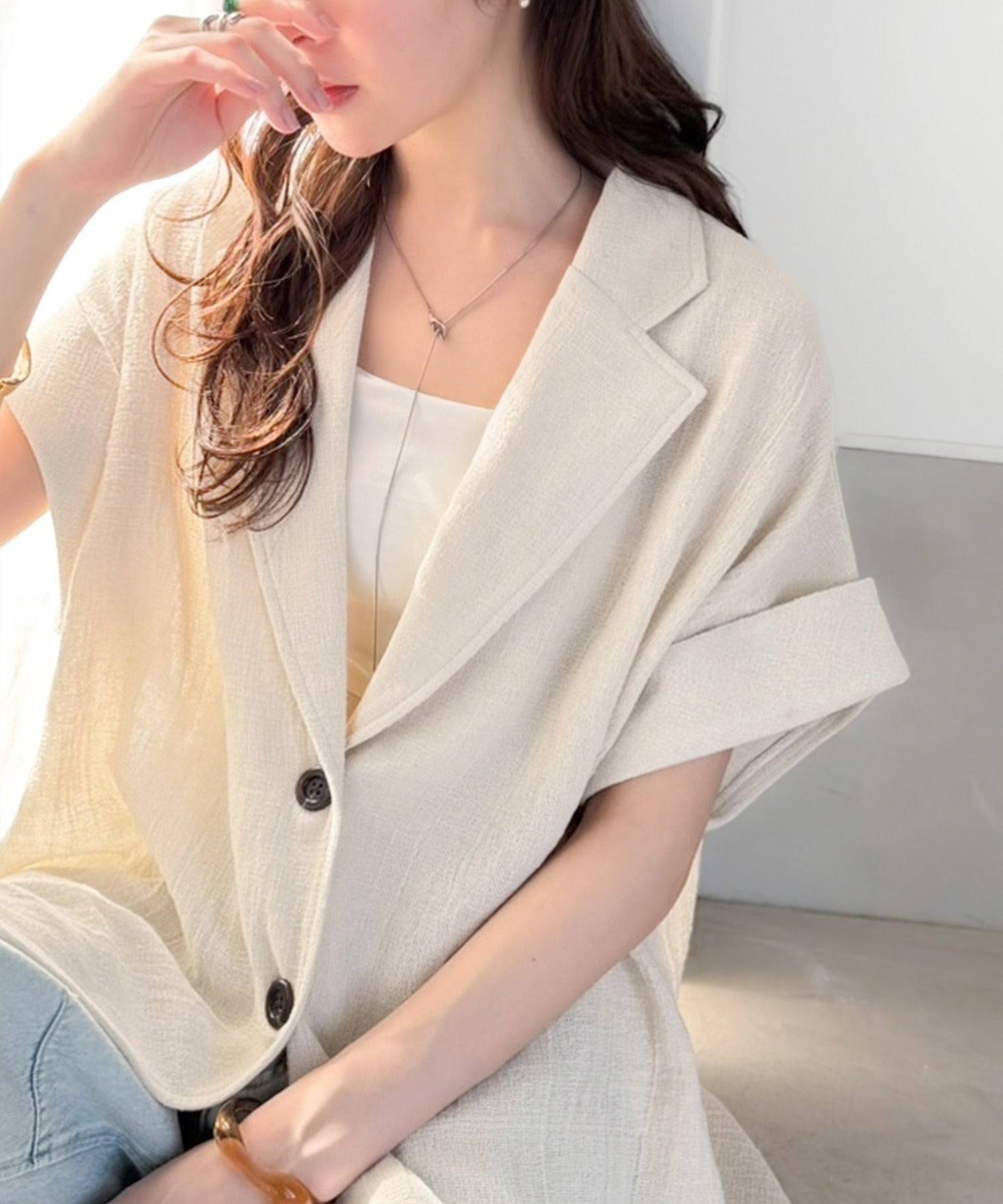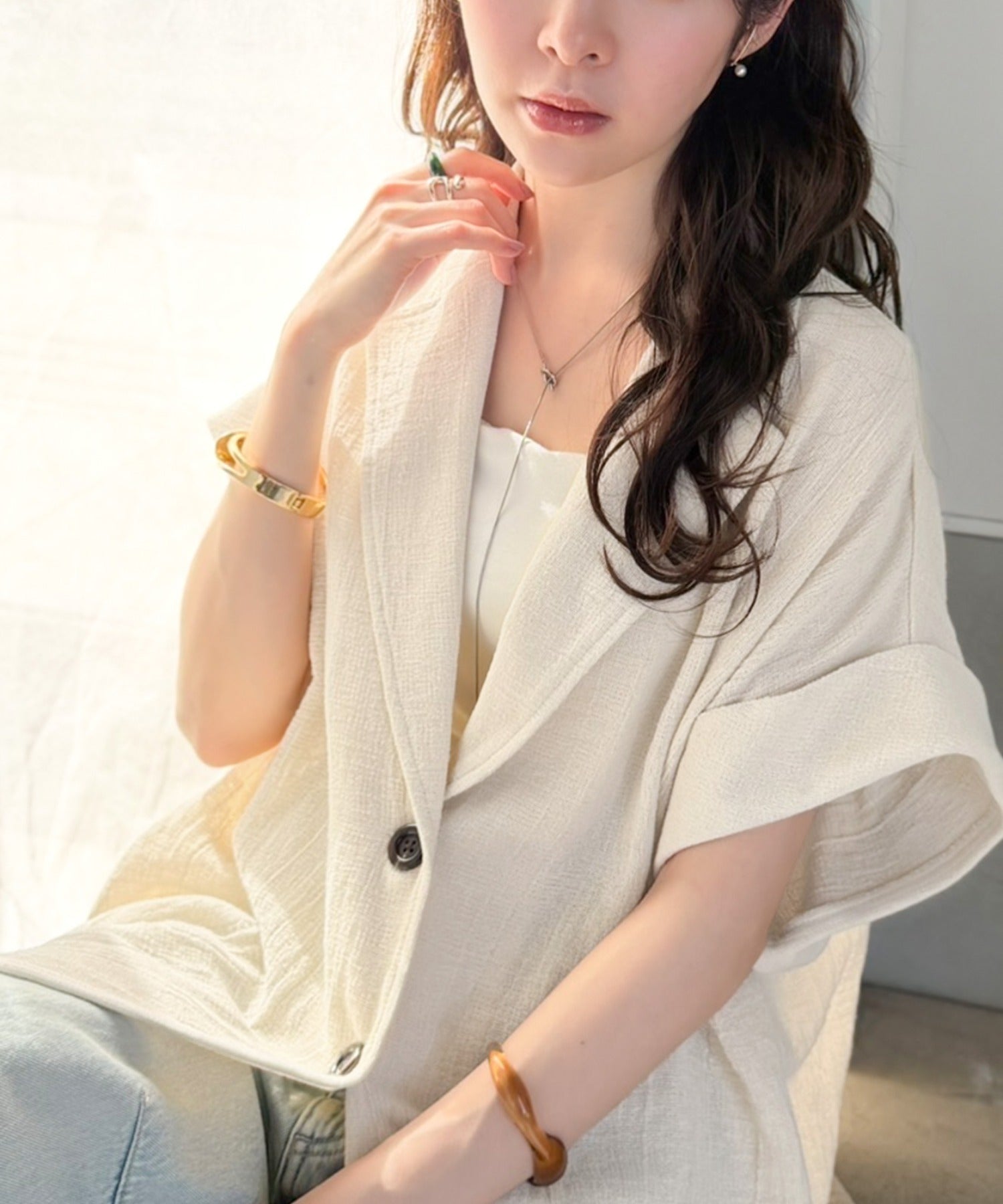 ナチュラルな表情のパナマ風素材が、大人の余裕を演出する半袖ジャケット。