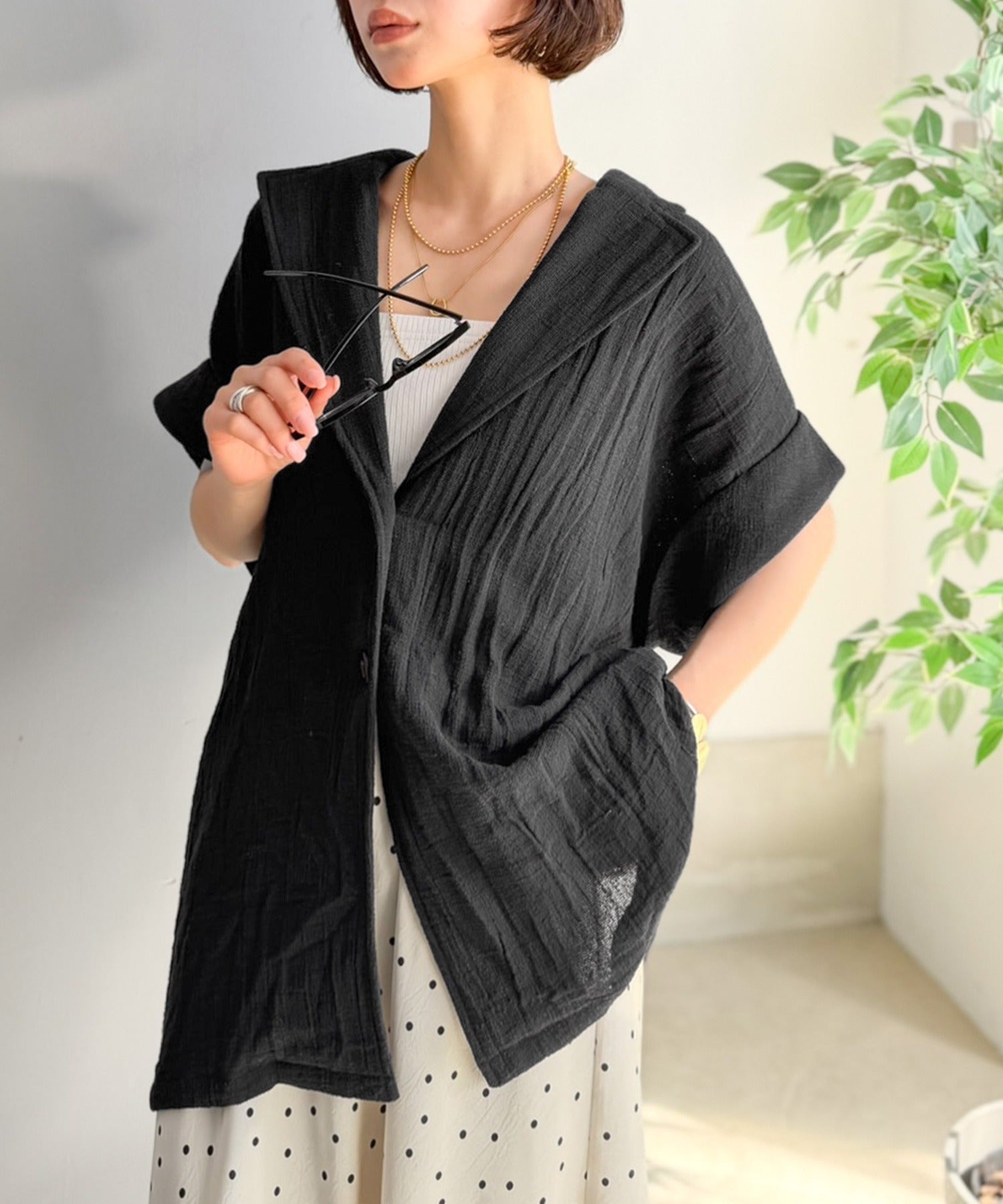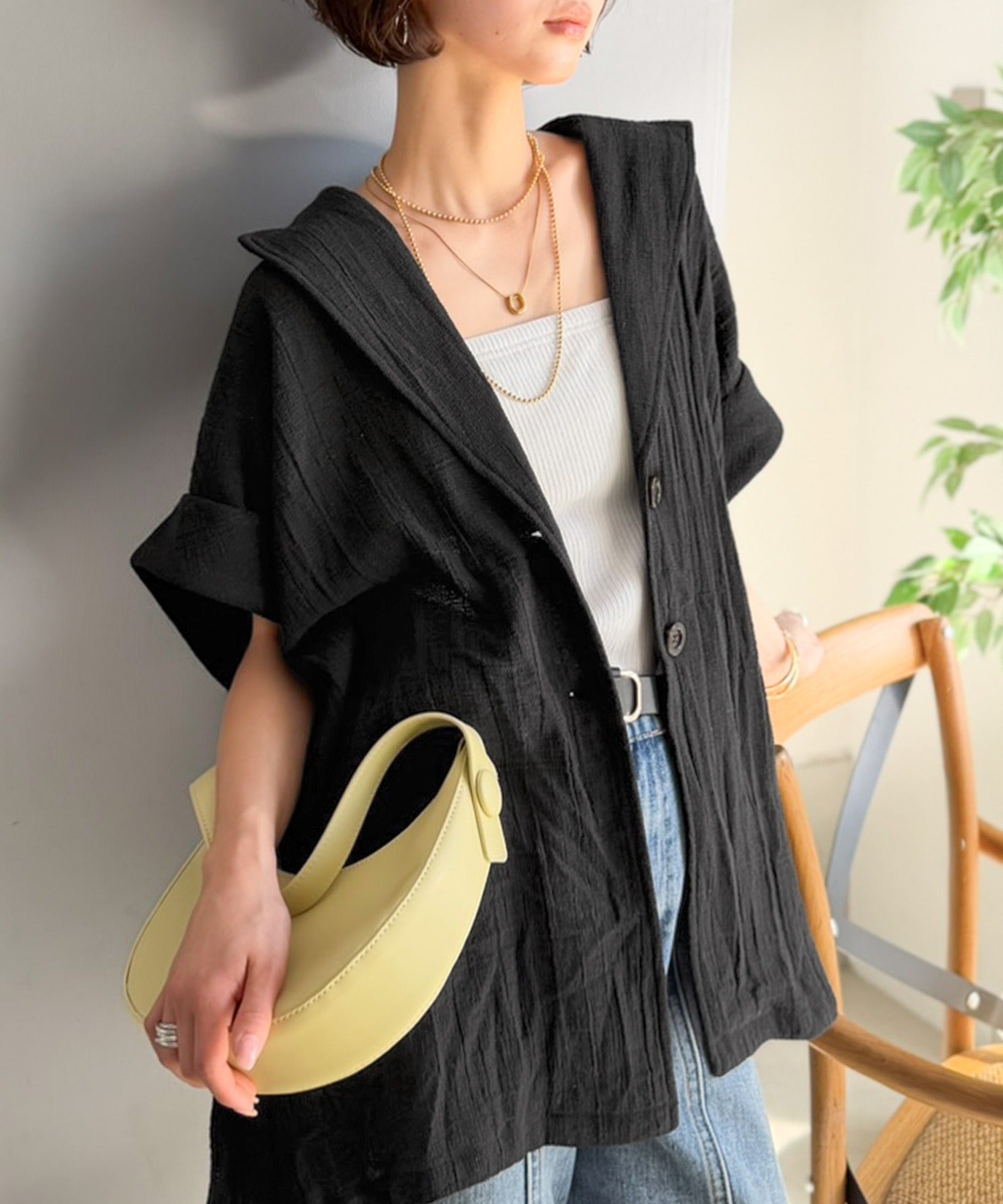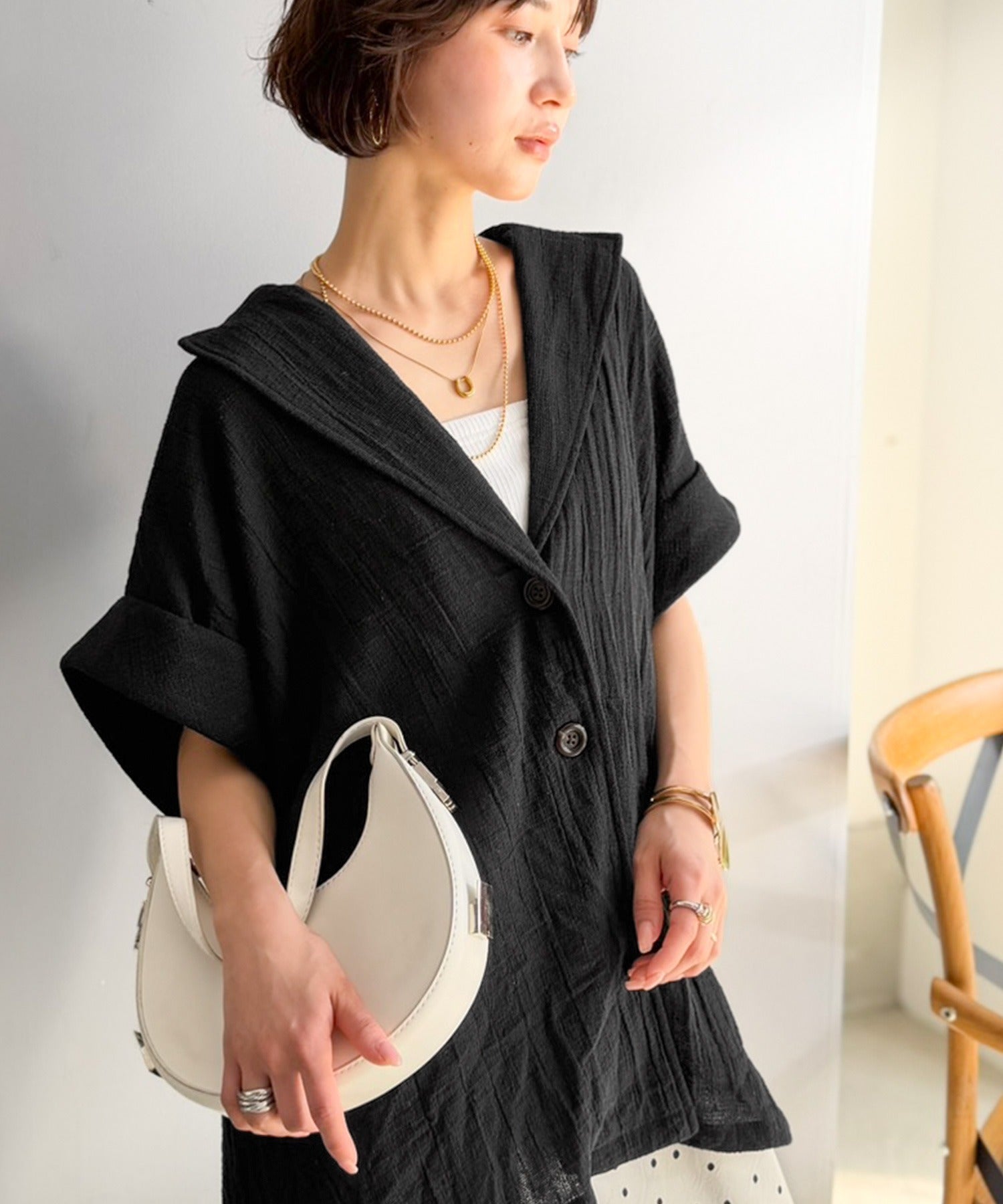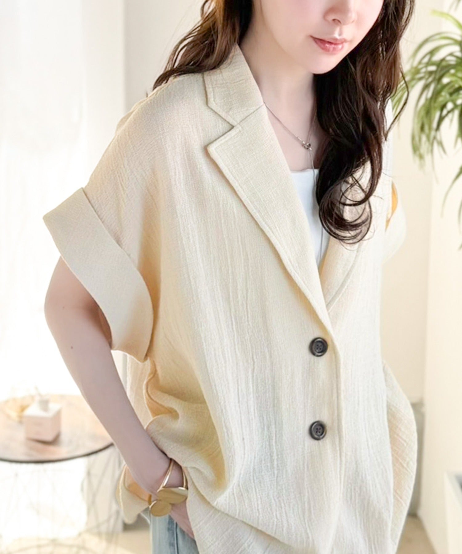 ナチュラルな表情のパナマ風素材が、大人の余裕を演出する半袖ジャケット。