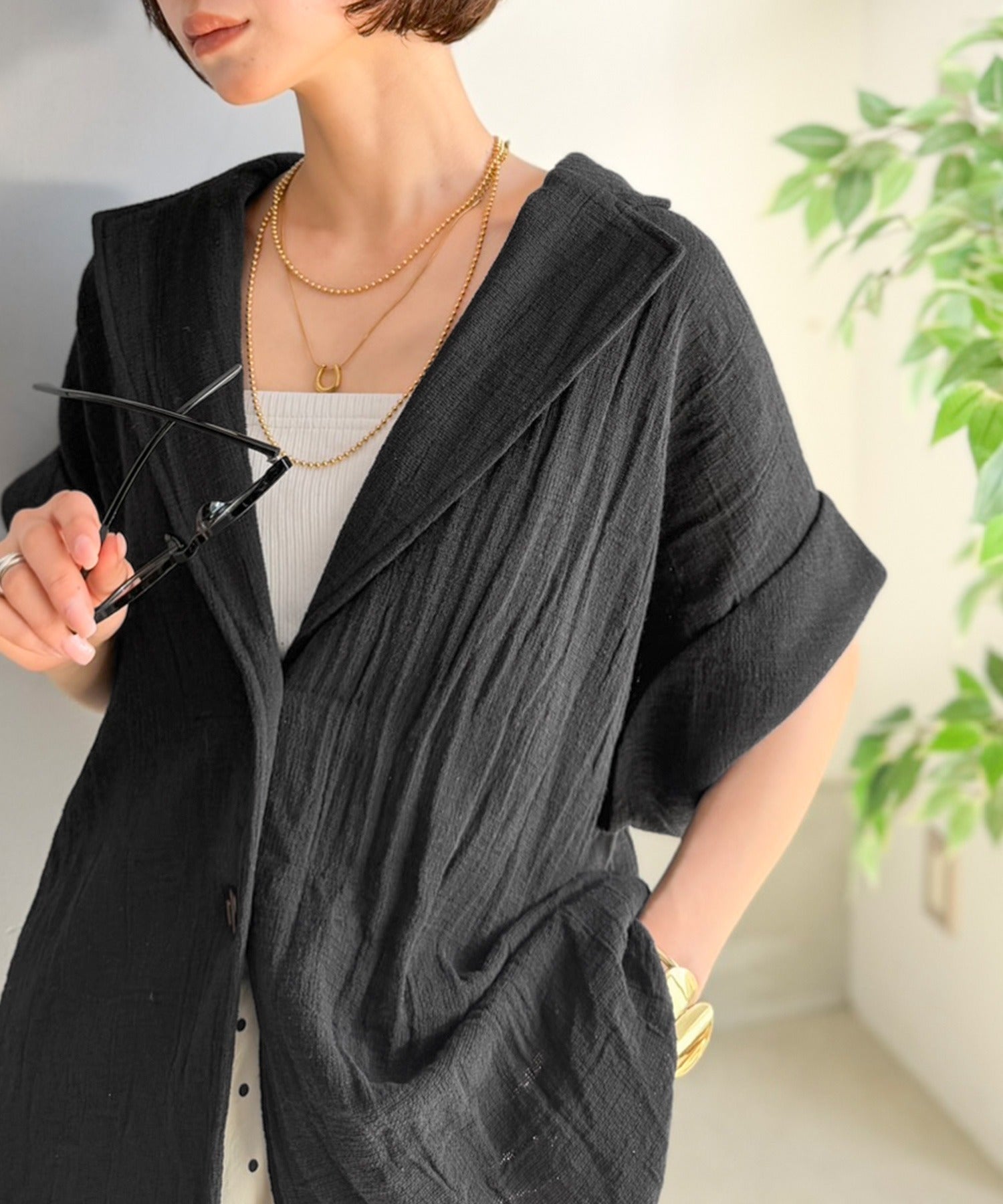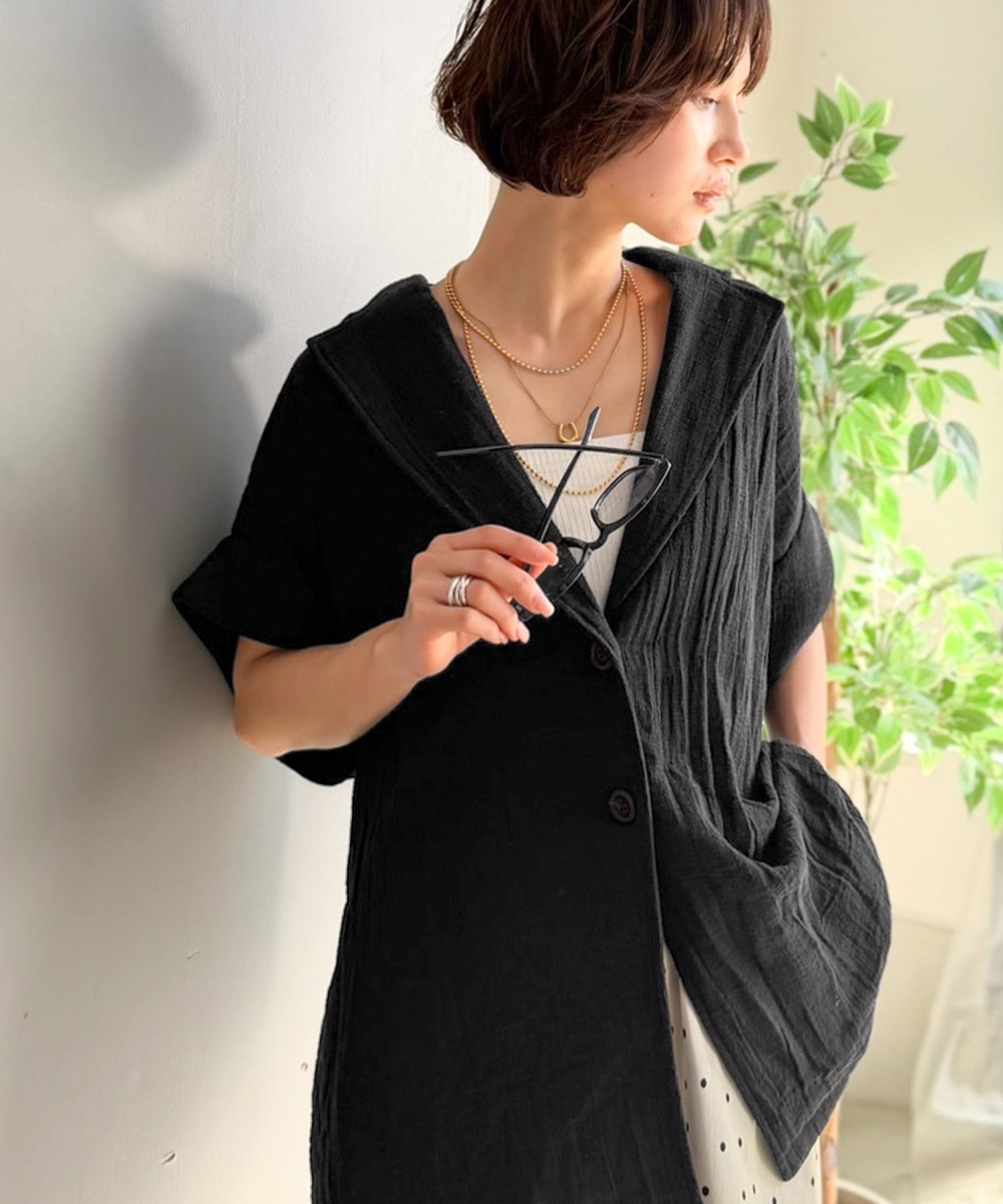 大人の品格を纏う、軽やかパナマ風テーラード。