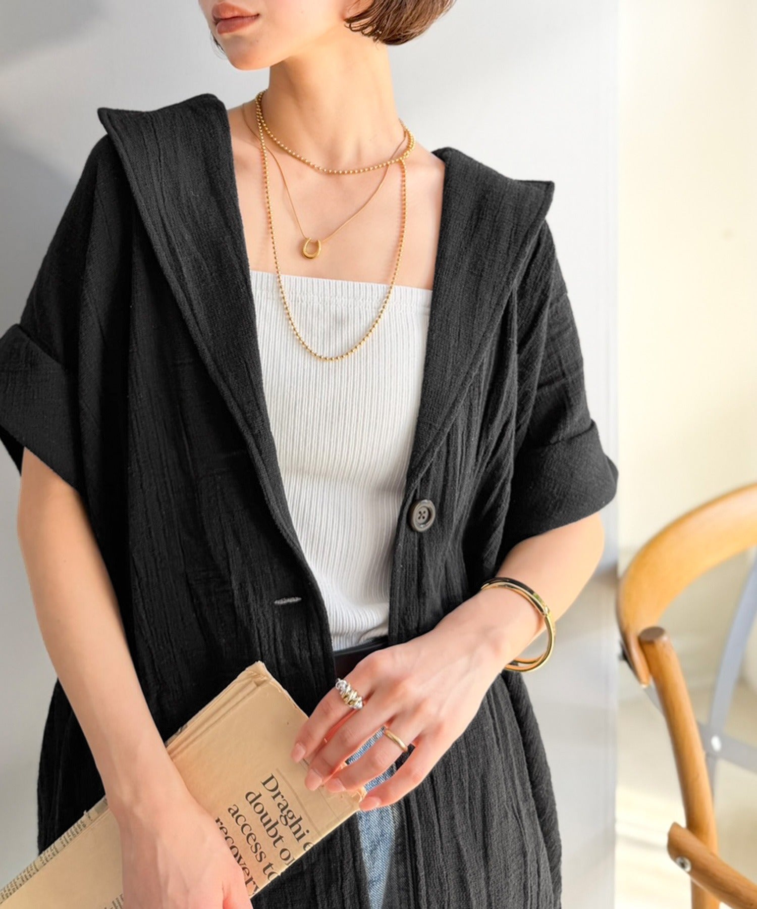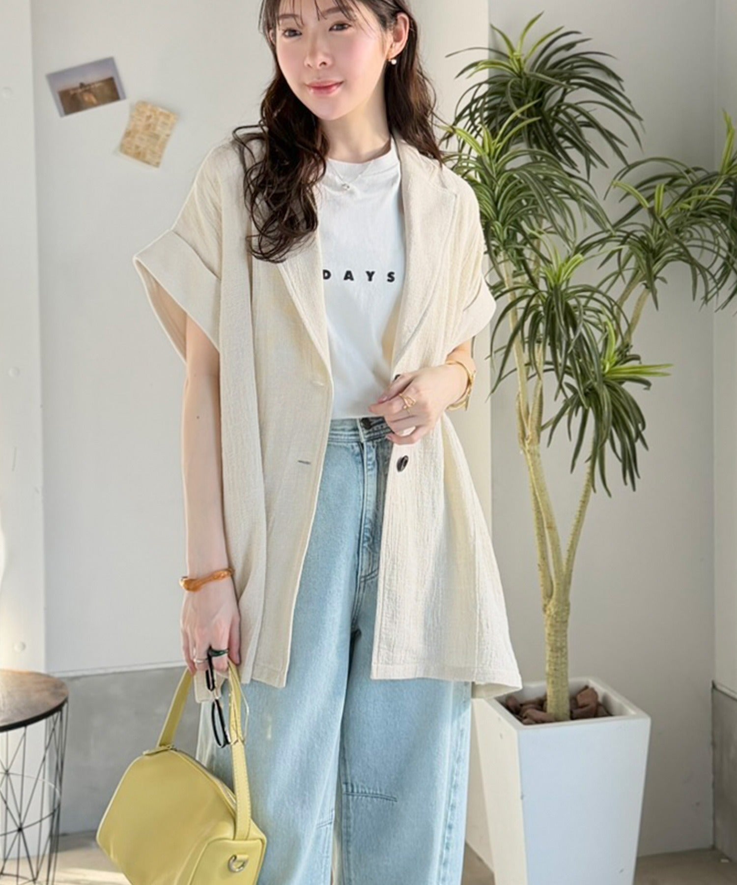サッと羽織るだけで、Tシャツスタイルも一気に洗練された旬の表情に♪