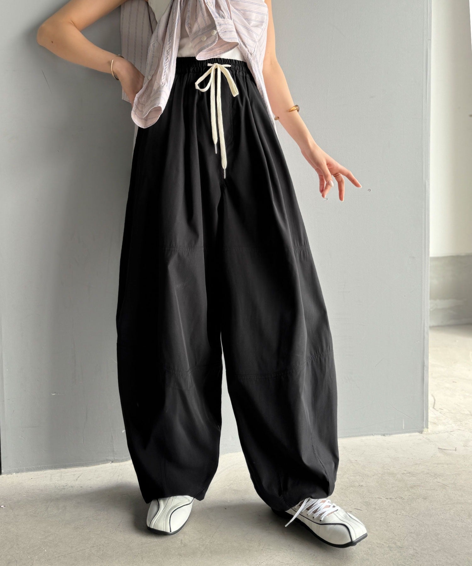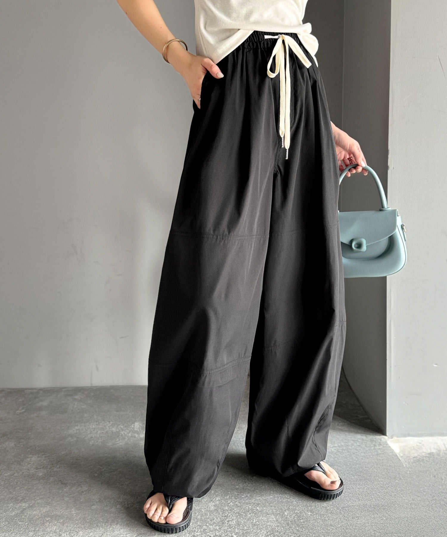 《AYA×クラシカルエルフコラボ》タイムレスに愛せる、洗練ワイドシルエット♪ウエストリボン裾ドロストサーカスパンツ ce1015079