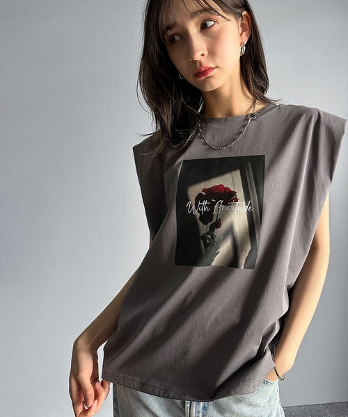 シンプルなのに着映える!お花フォトプリントシルケット加工フレンチスリーブTシャツ ce1020197