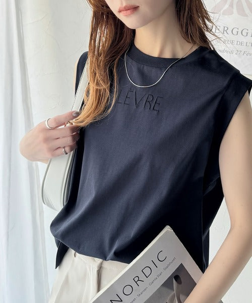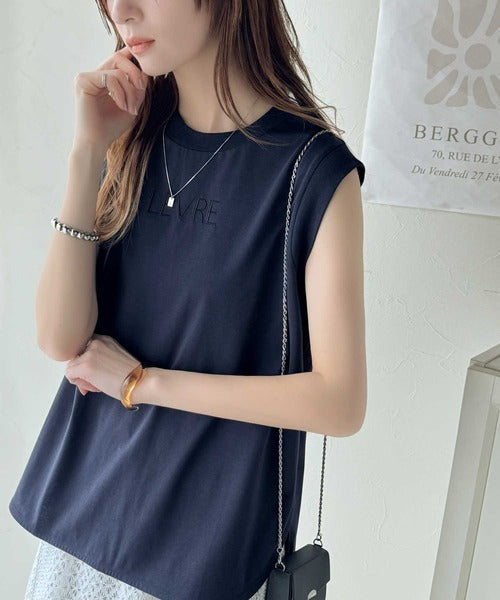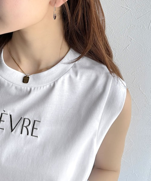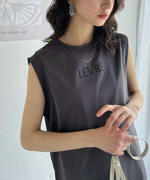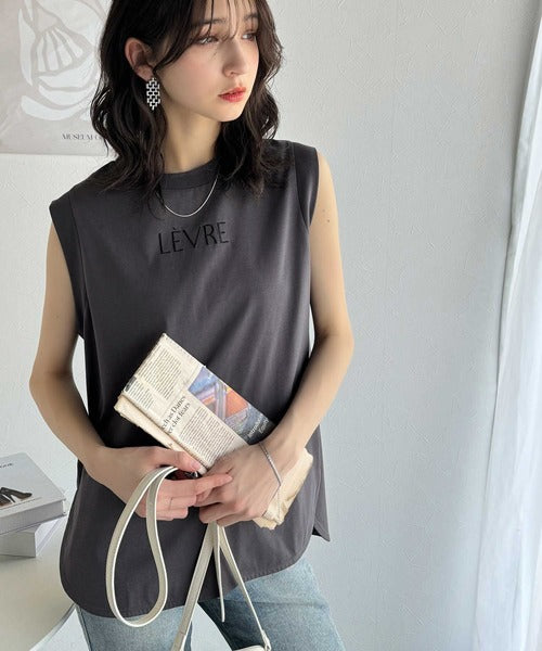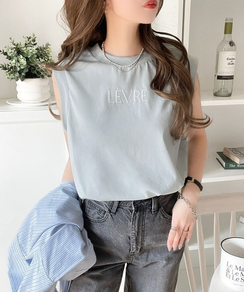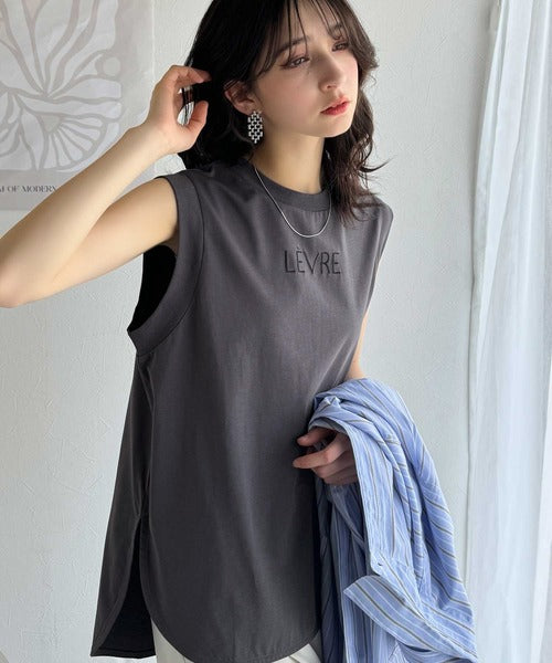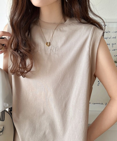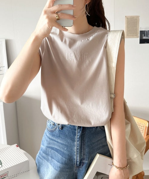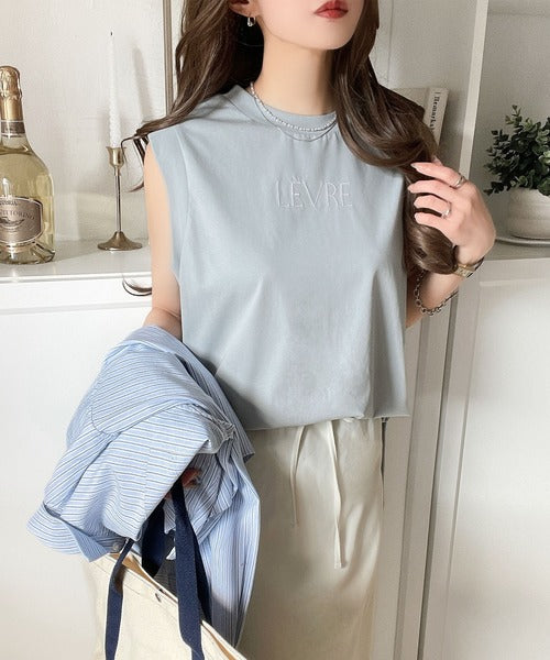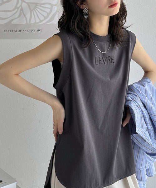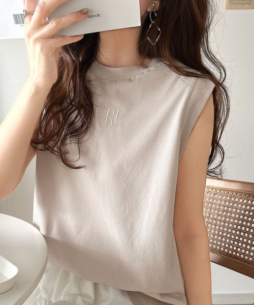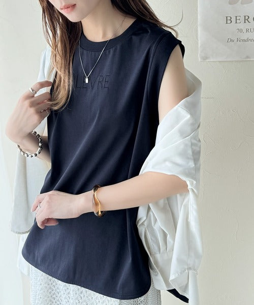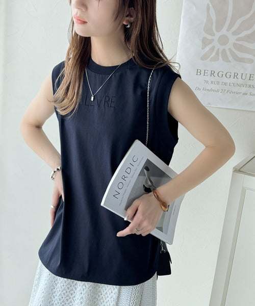 春夏コーデの主役!シルケット胸元刺繍サイド裾スリット入りノースリーブカットソー ce1020199