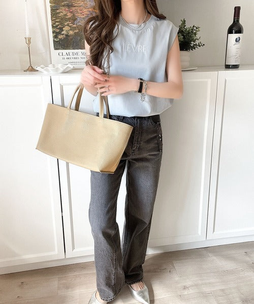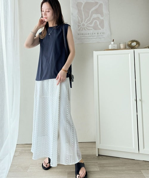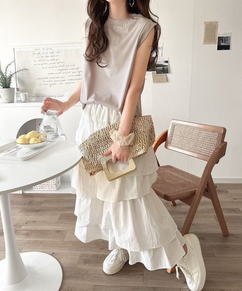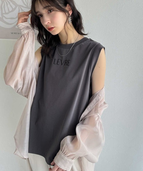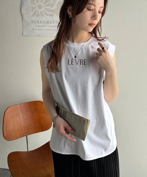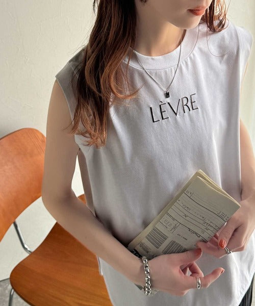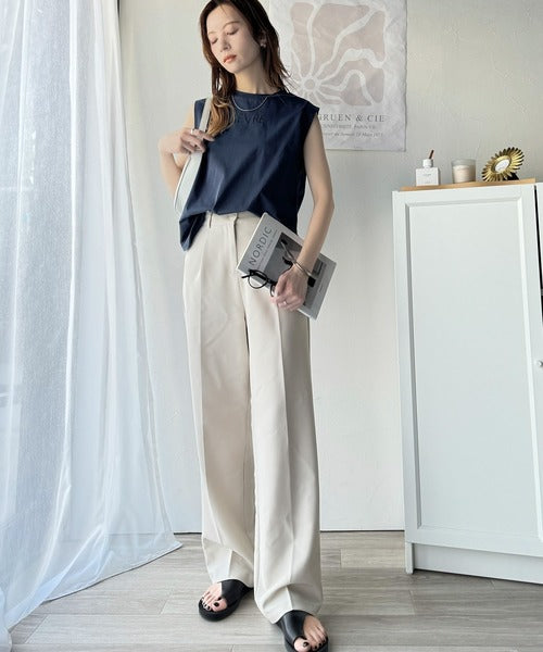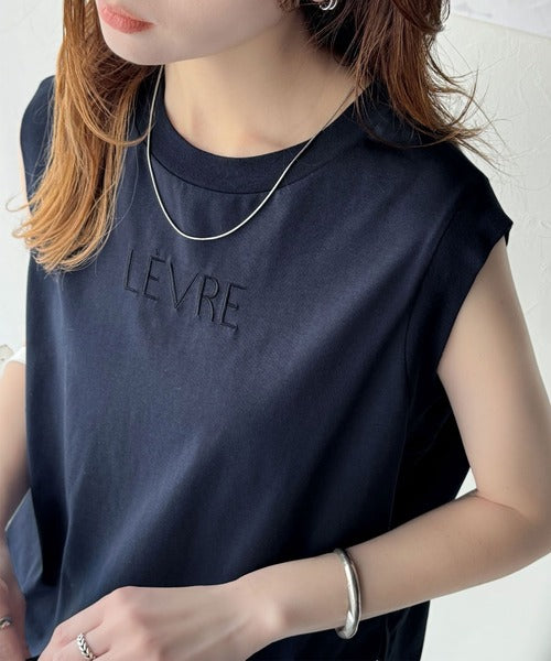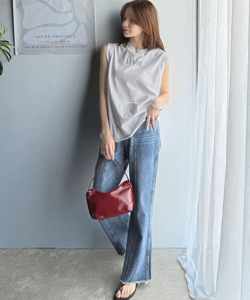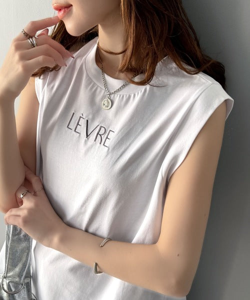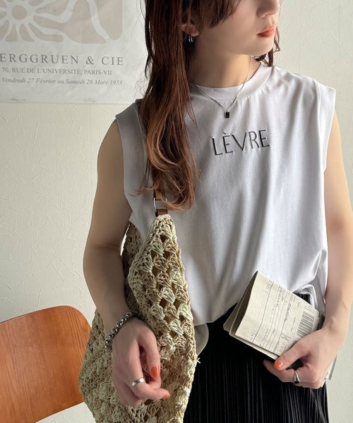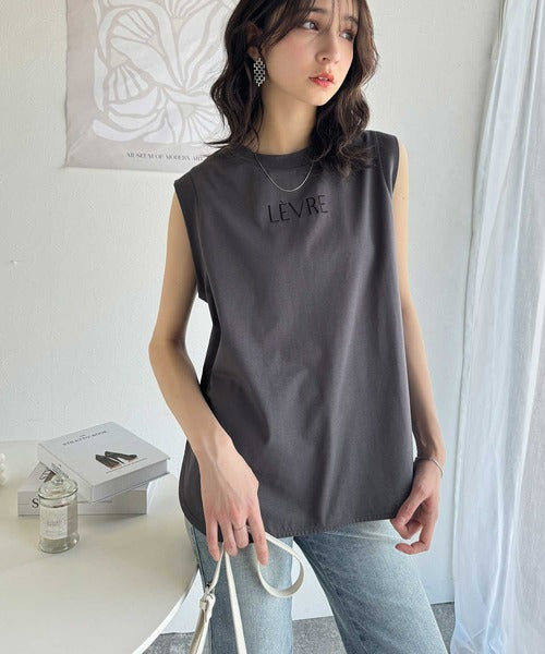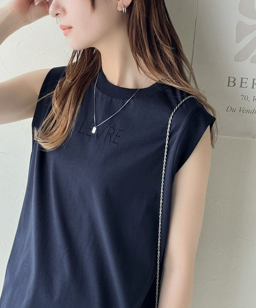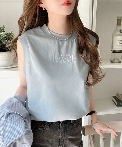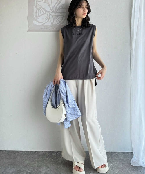 春夏コーデの主役!シルケット胸元刺繍サイド裾スリット入りノースリーブカットソー ce1020199