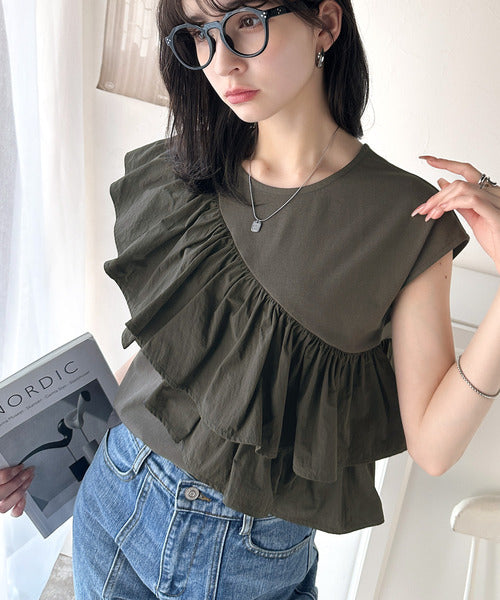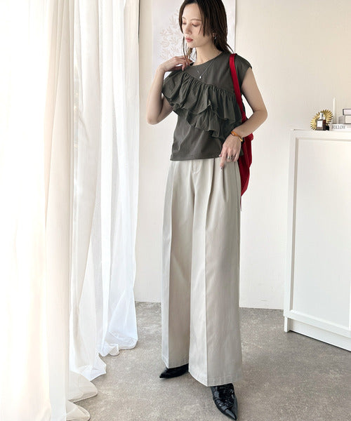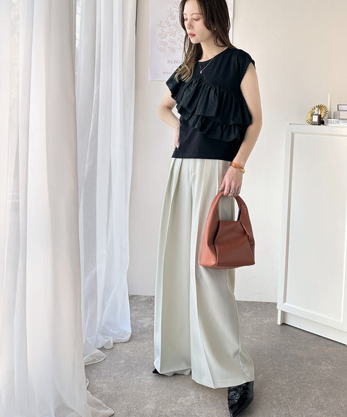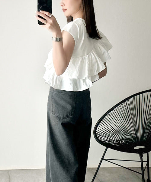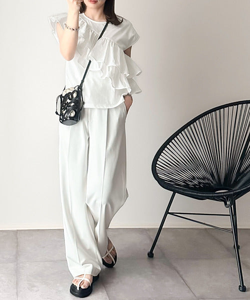 シンプルに着こなせるのに、存在感抜群なラッフルトップス。