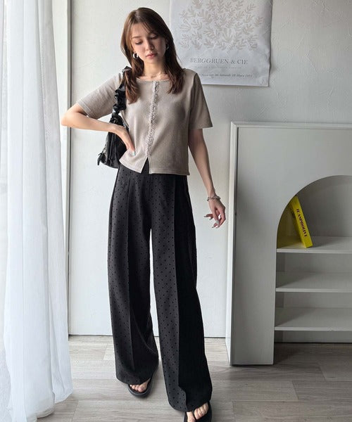 デニムやスラックスなどのシンプルなボトムスに合わせるだけで、