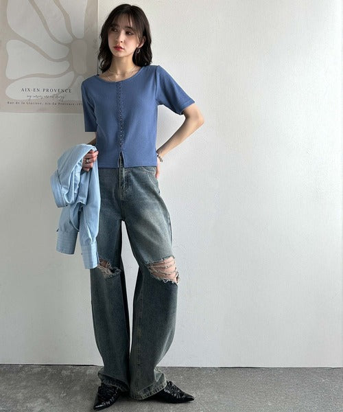 オンオフ活躍する定番コンパクトTにホックデザインで