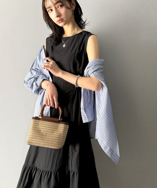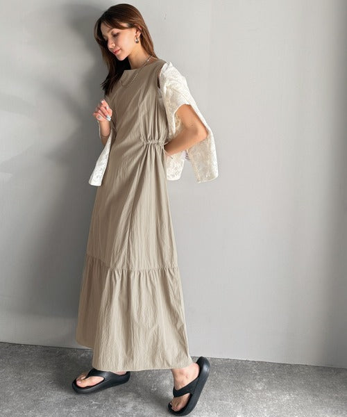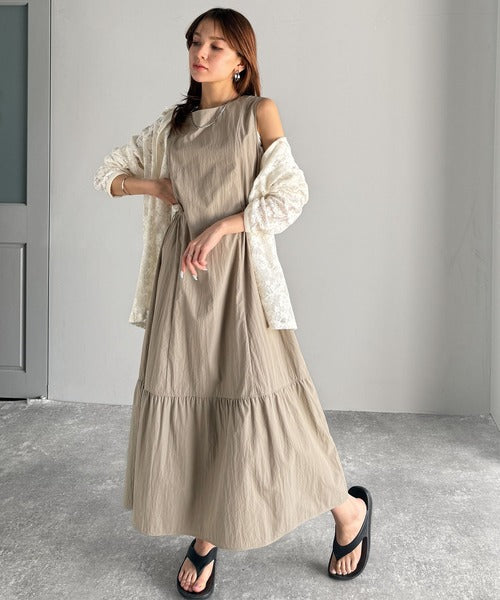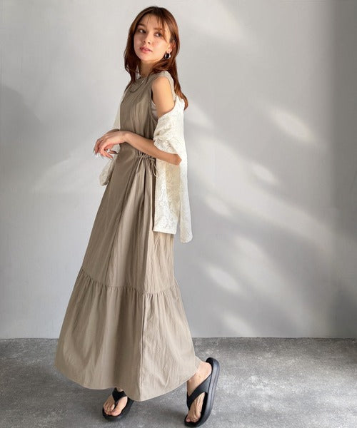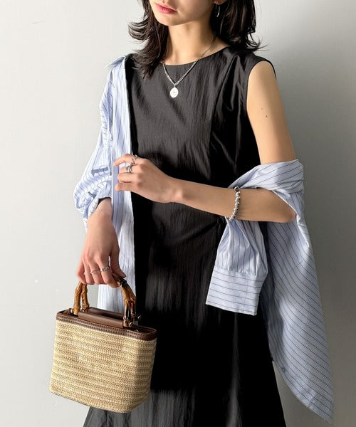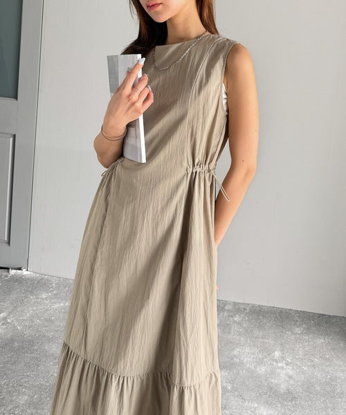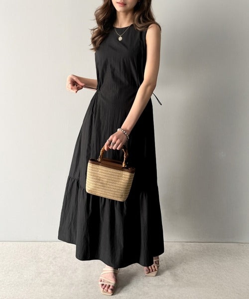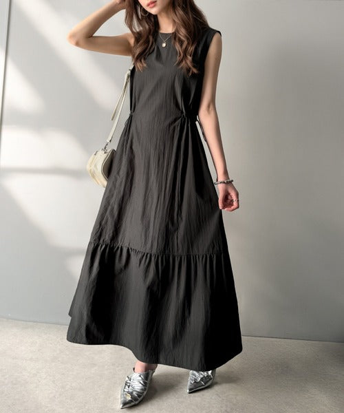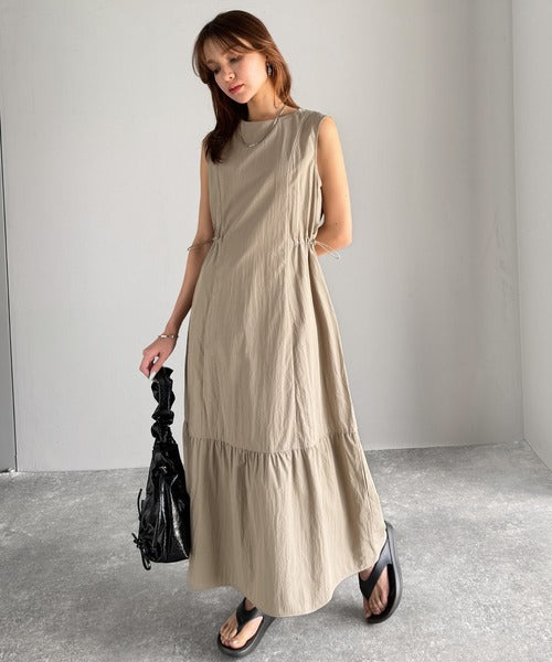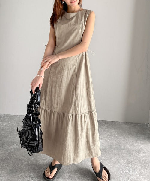 軽やかな美シルエット。軽量ストレッチサイドドロストノースリーブ裾切り替えワンピース(Aライン) ce1020267