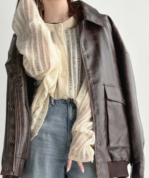 ふんわり×ゆるっと。前後2way針抜きリブ編みカーディガン(長袖) ce1020287