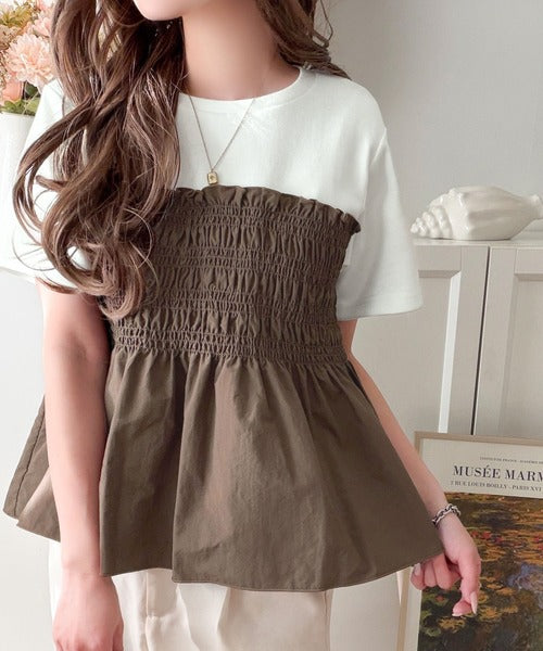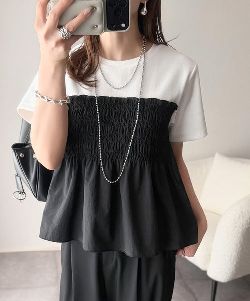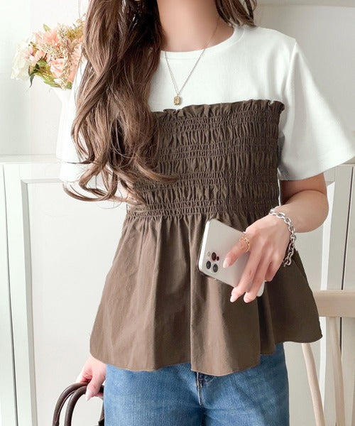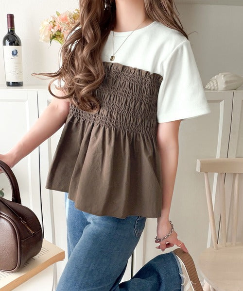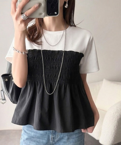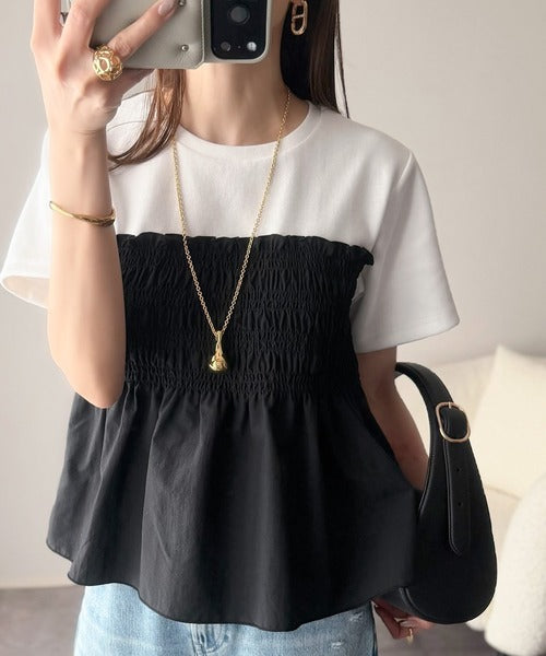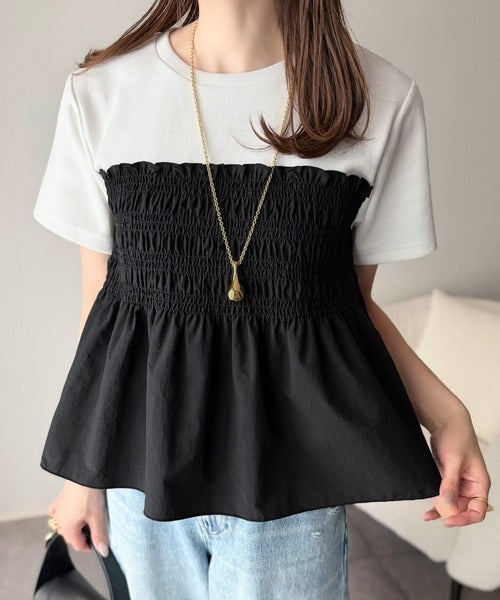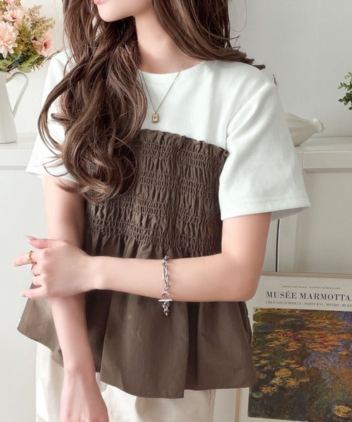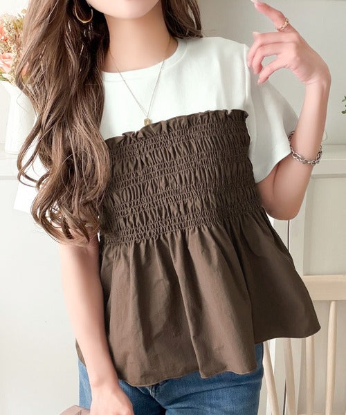 華やぎシャーリングで目を奪う。シャーリングドッキング半袖プルオーバー ce1020347