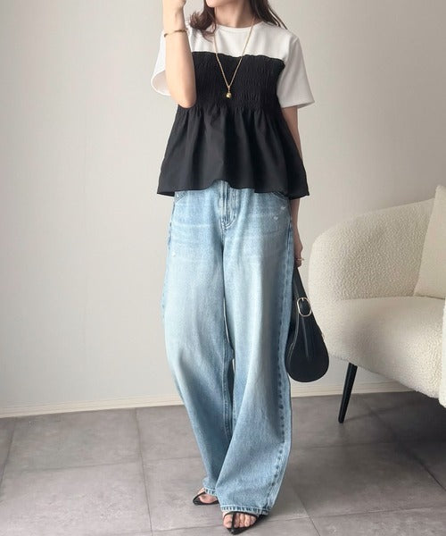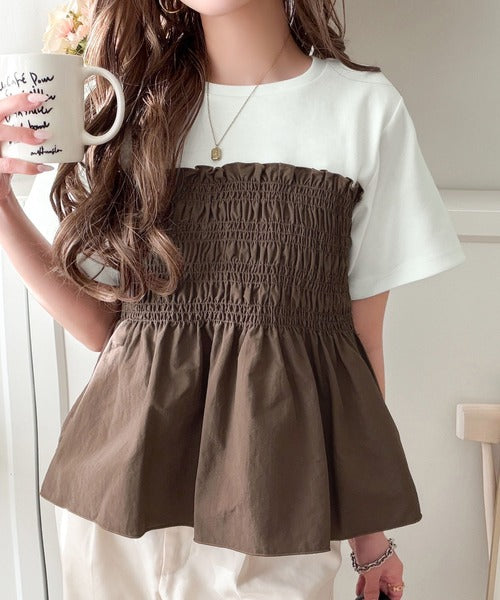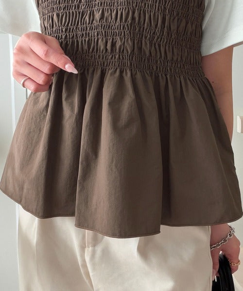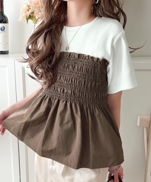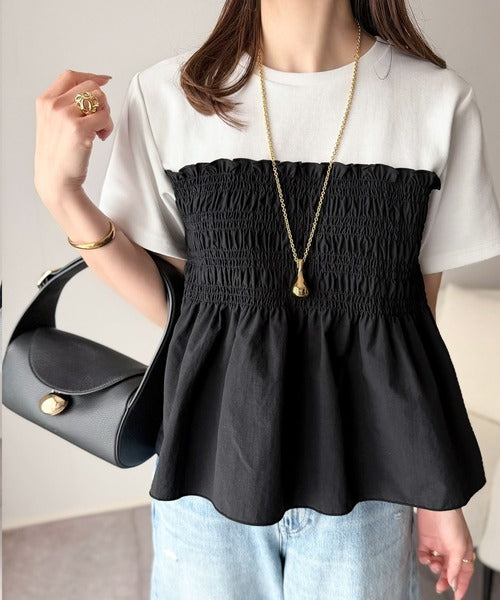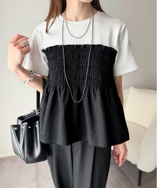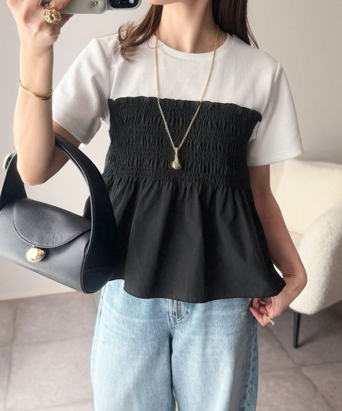 たっぷりのシャーリングとペプラムシルエットが