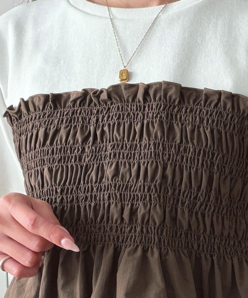 胸元にたっぷり施されたシャーリングデザインが、