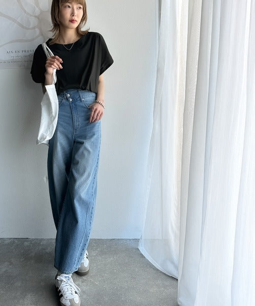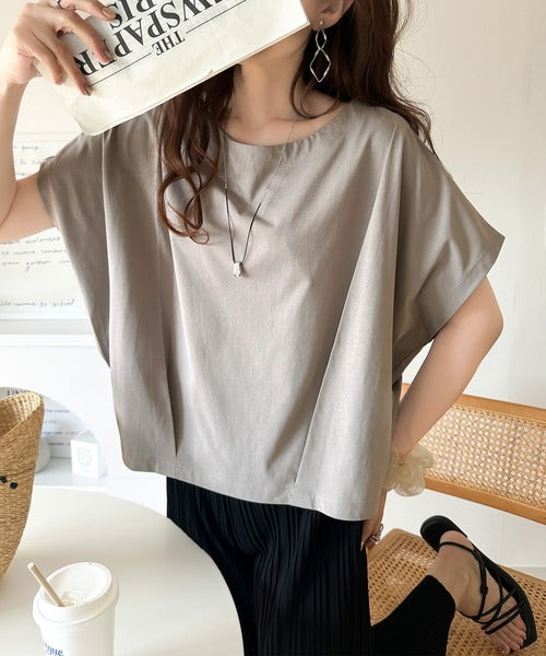 ひんやり素材で涼しく快適に。こなれタックデザインの半袖フレンチスリーブカットソー。(接触冷感機能付き) ce1050264