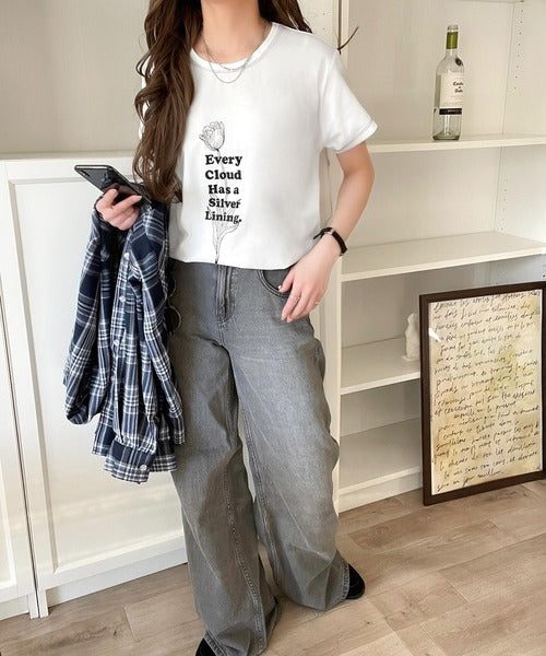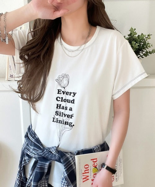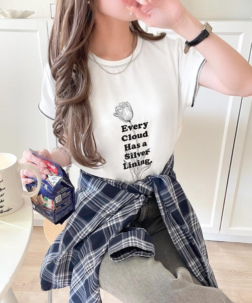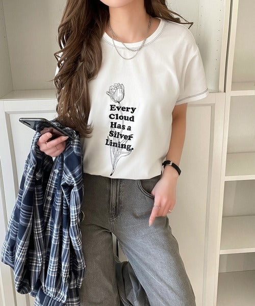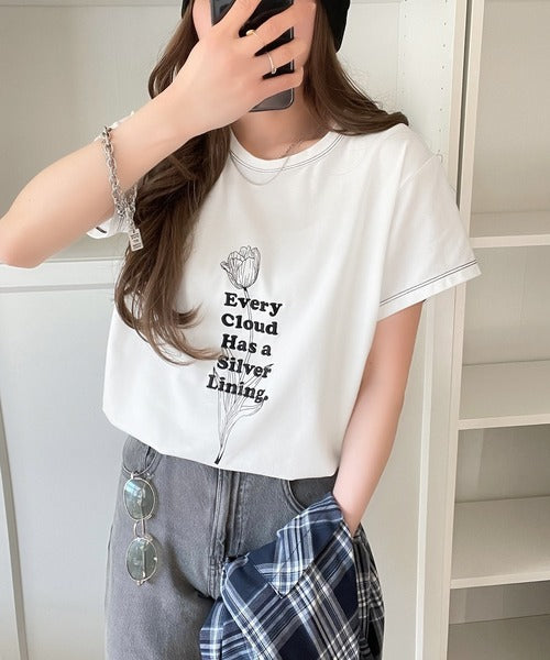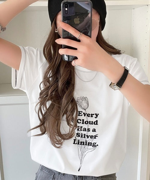 春夏シーズンにぴったりなフラワープリント×英字ロゴ刺繍Tシャツ!