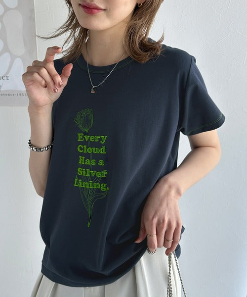 上品さが魅力。フラワープリントグラフィック刺繍Tシャツ(半袖) ce1050268
