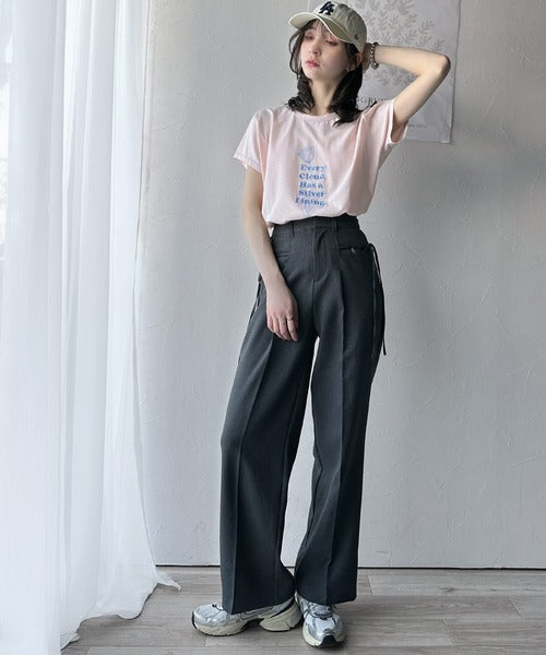 カジュアルなTシャツを、シンプルながら華やかに格上げ。
