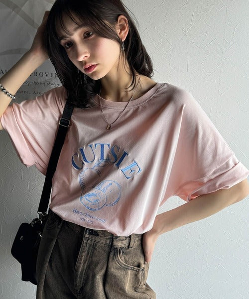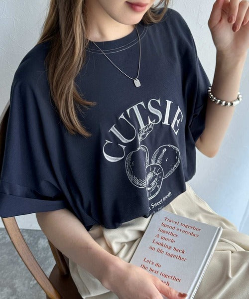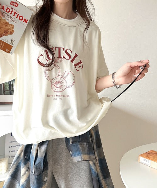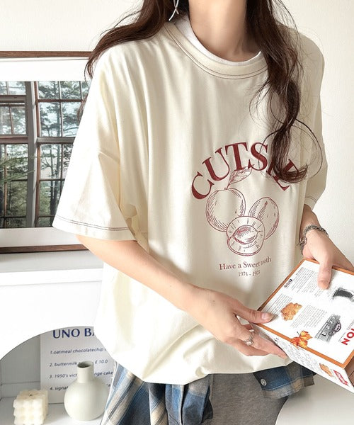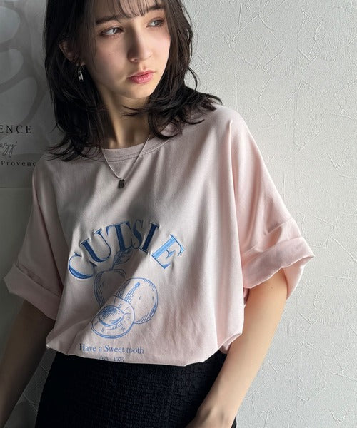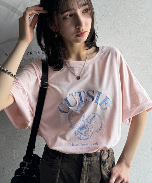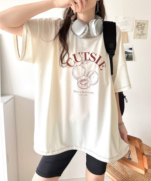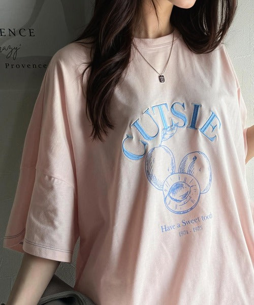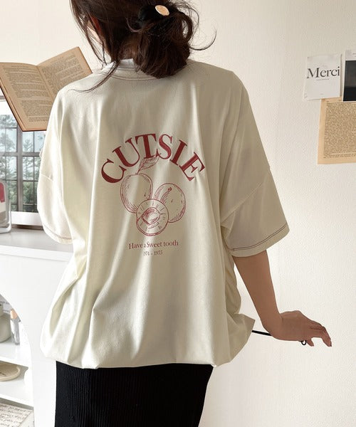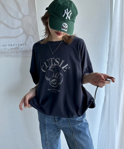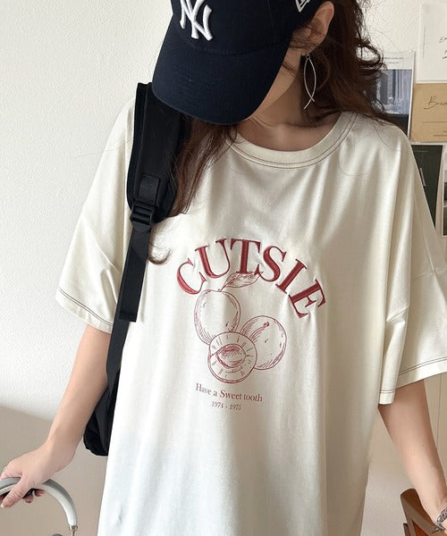 フルーツグラフィックが可愛いオーバーサイジングのTシャツ。