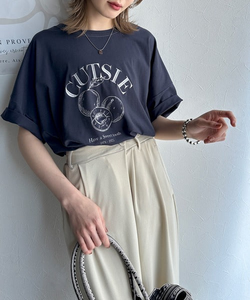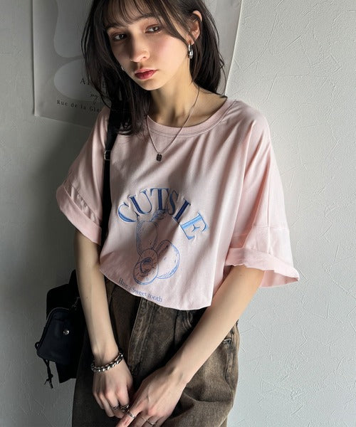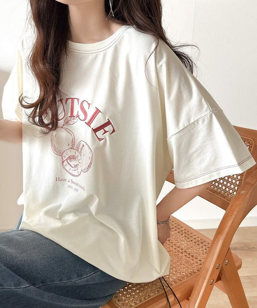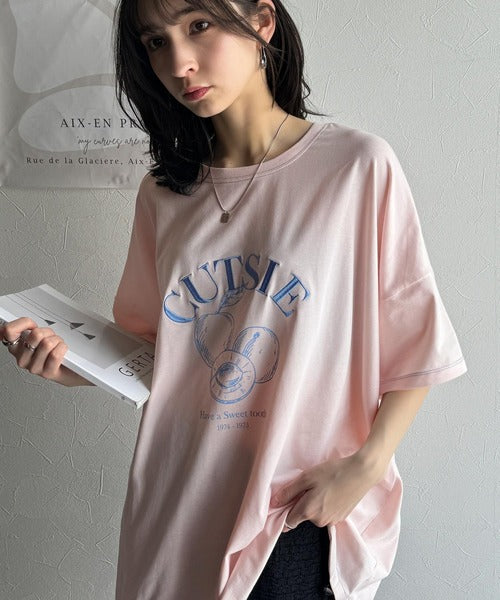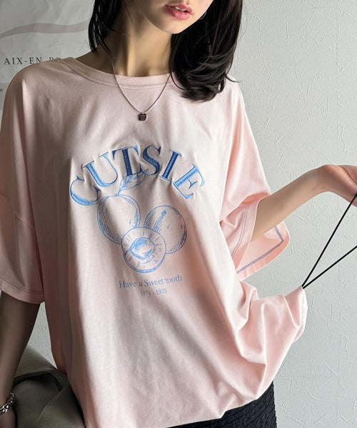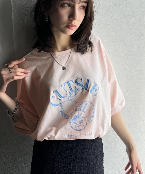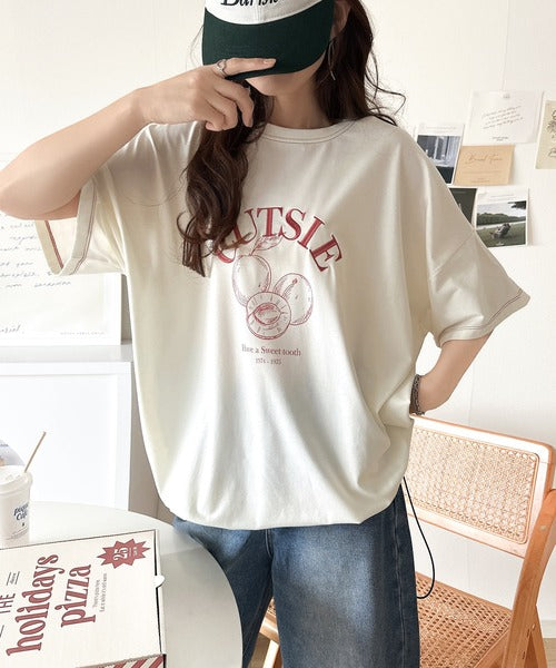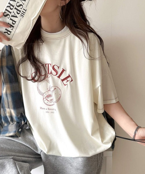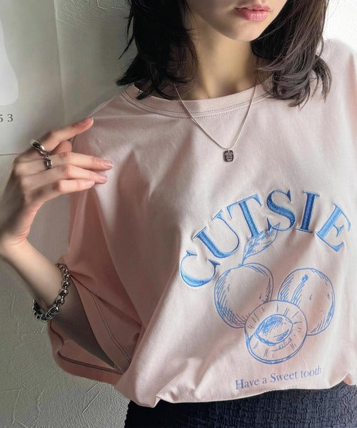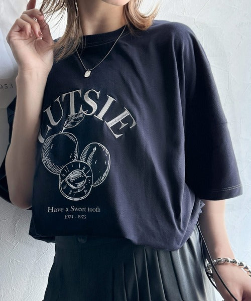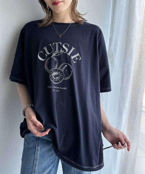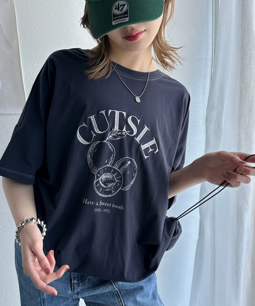 フルーツグラフィックが可愛いオーバーサイジングのTシャツ。