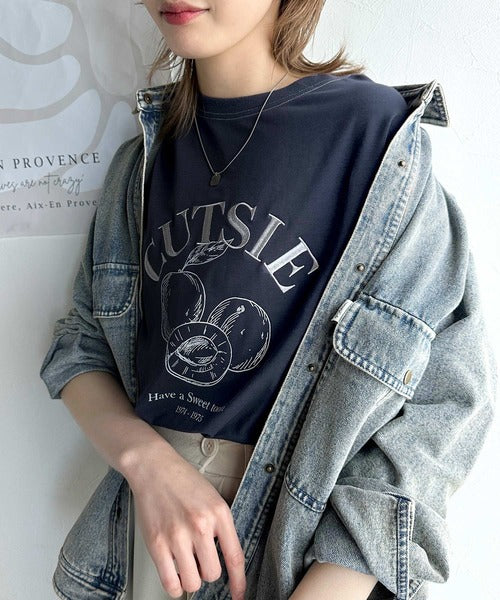 毎日のスタイルを楽しく彩る。前後2way裾ドロストフルーツグラフィックTシャツ ce1050269