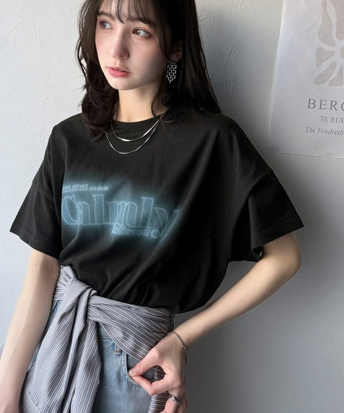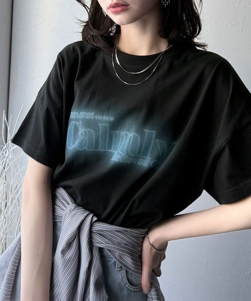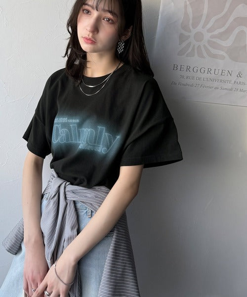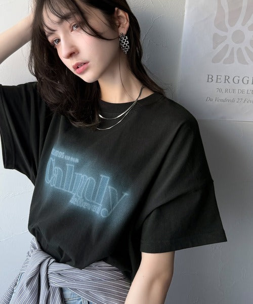 トレンドのスプレー風ロゴが映えるグラフィックTシャツ。