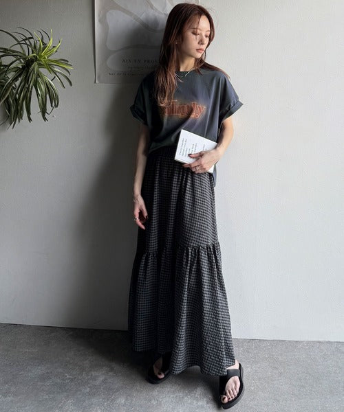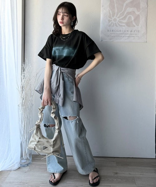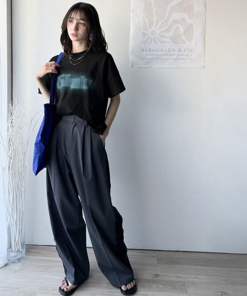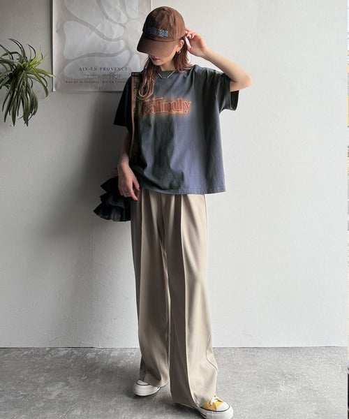 程よいワイドシルエットとスプレー風デザインでこなれ感UP♪