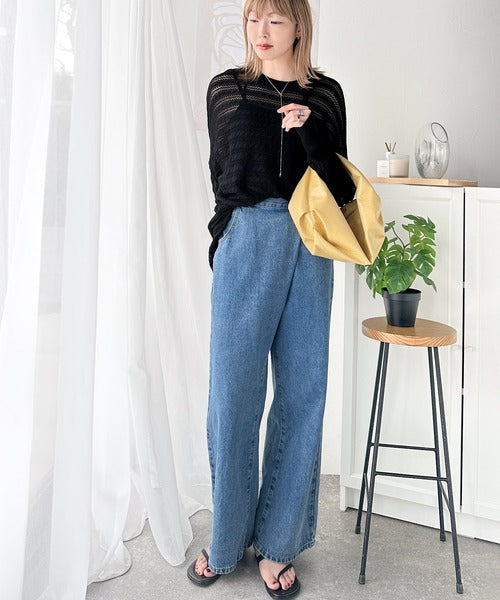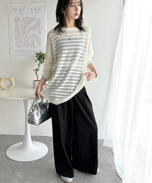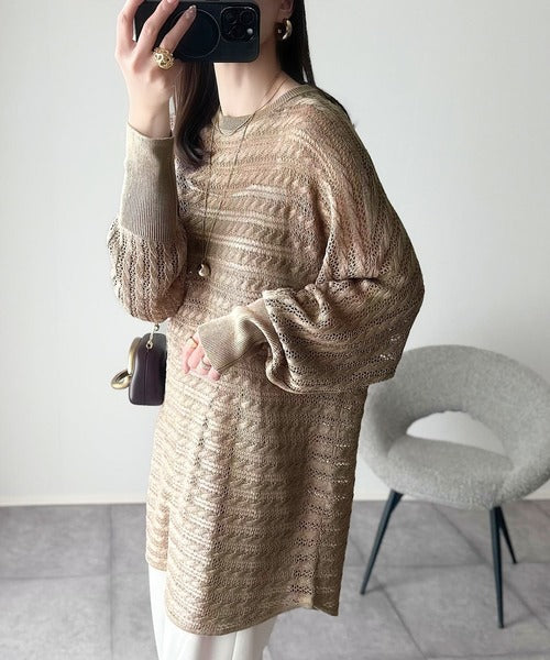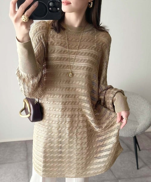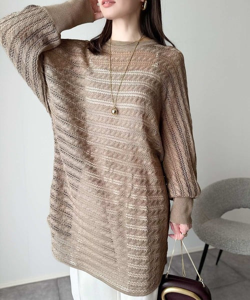 麻タッチの軽やかな透かし編みニット
