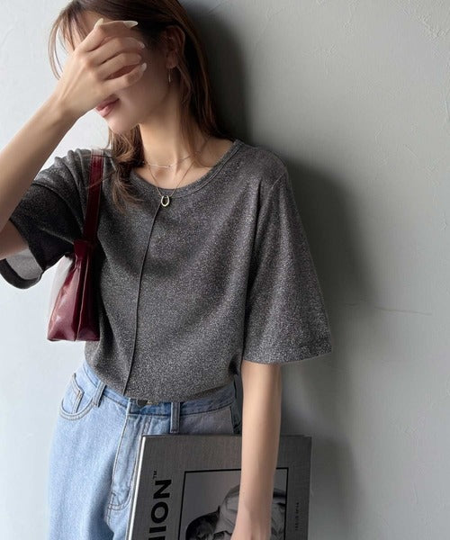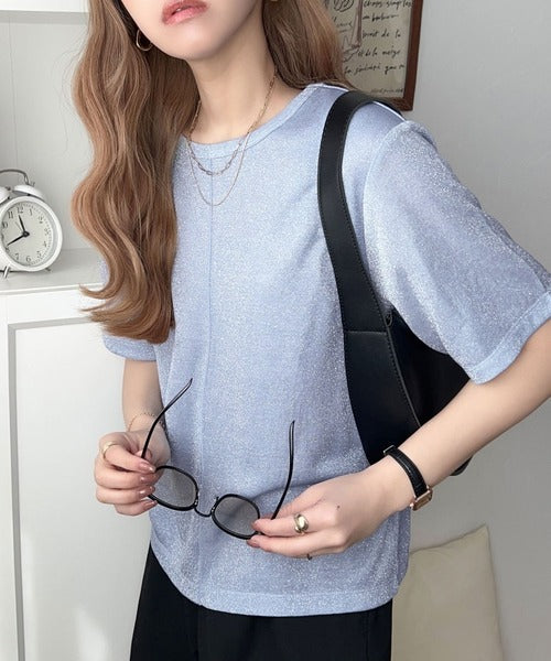光を纏う。センターメロウシアーラメ半袖Tシャツ ce1050307