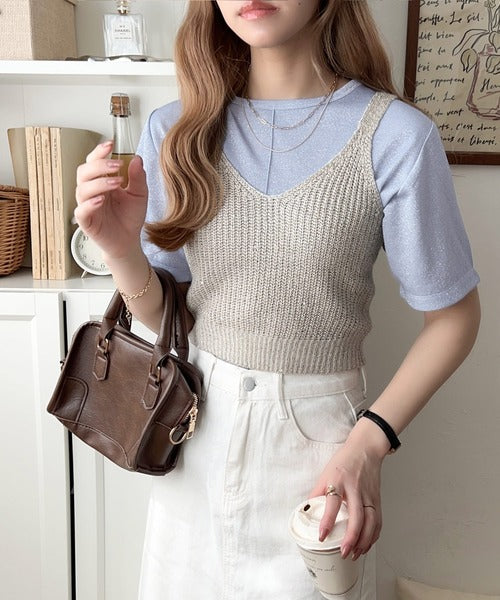 ラメ素材が優雅に輝き、上品なカジュアルを演出。