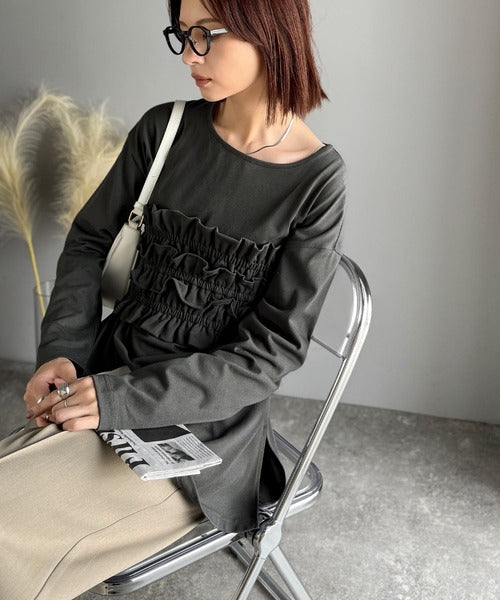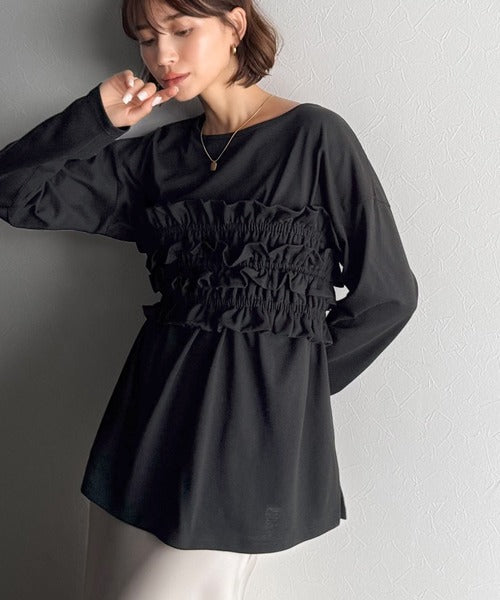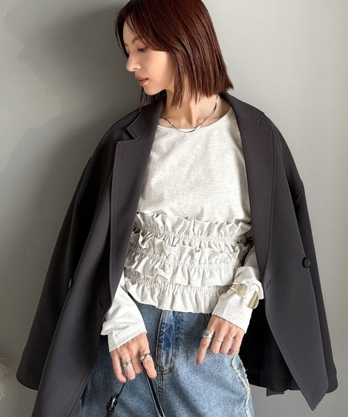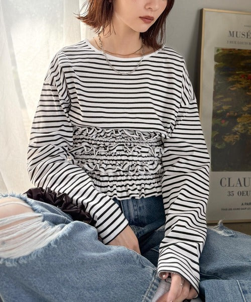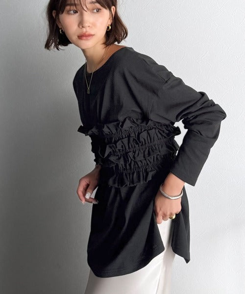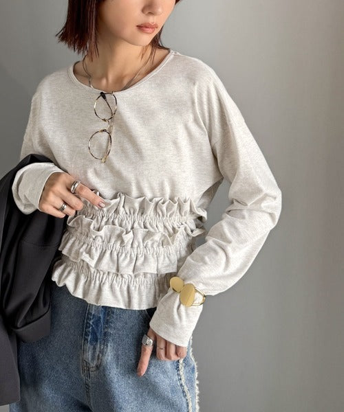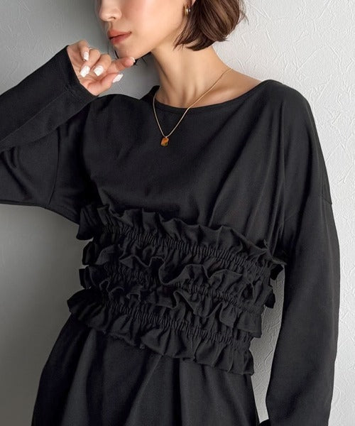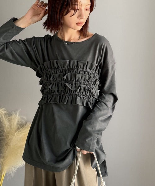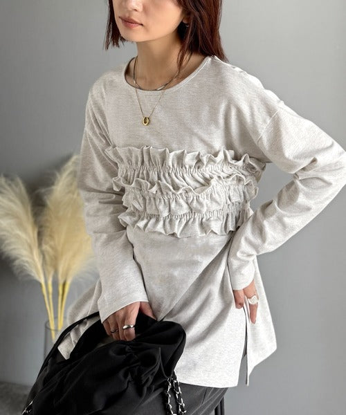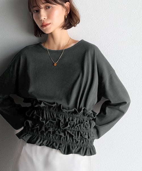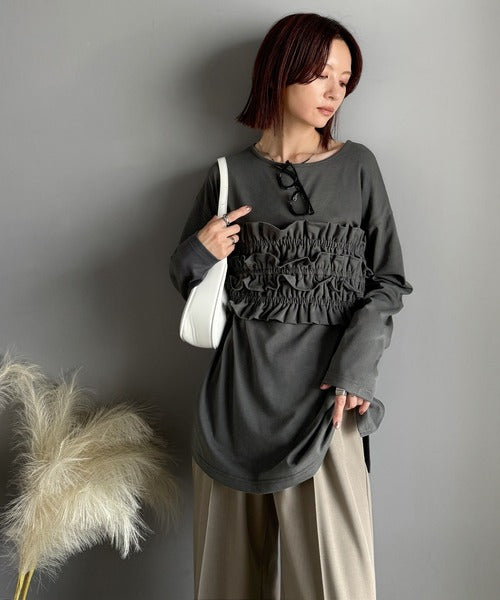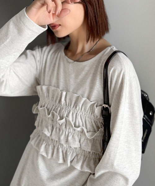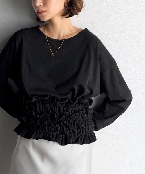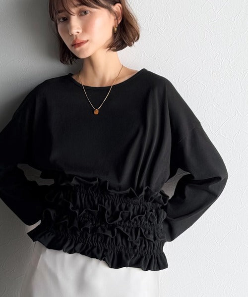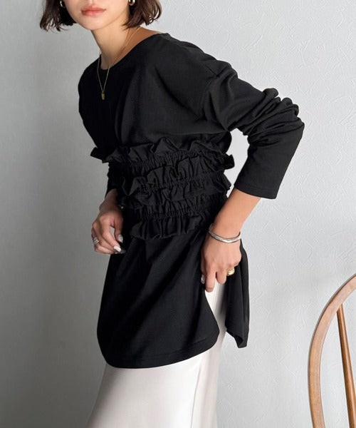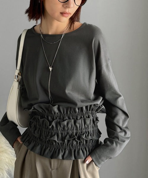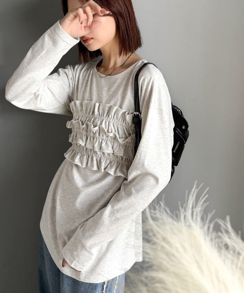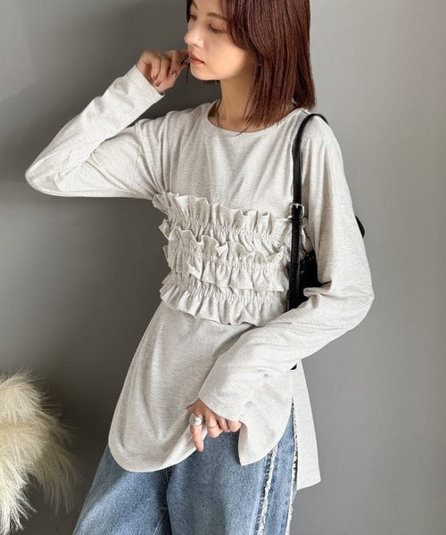 甘すぎない大人なフェミニン◎フリルビスチェベルトセットカットソートップス(長袖) ce1050330