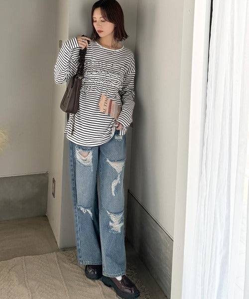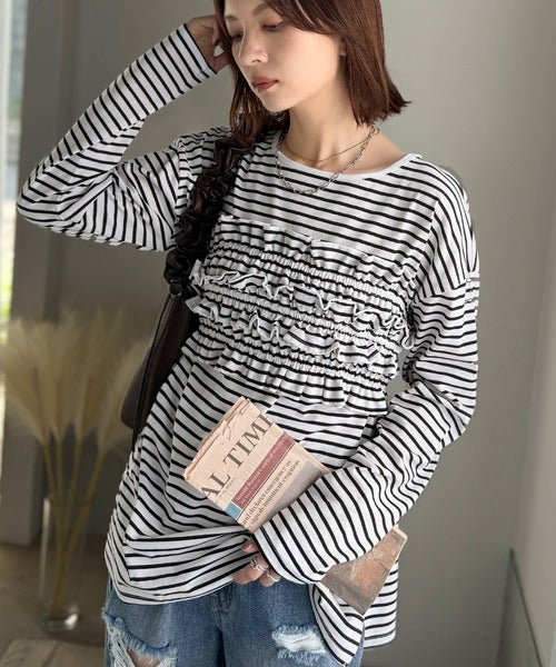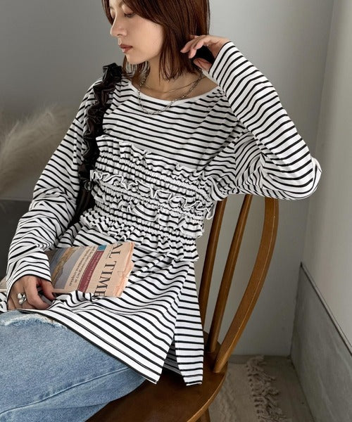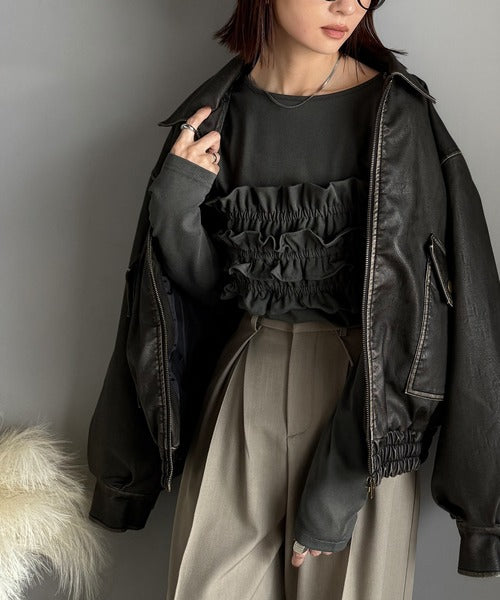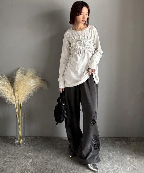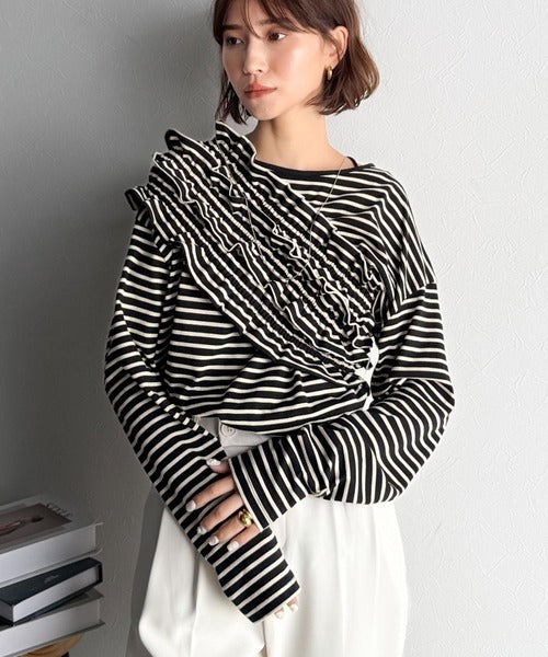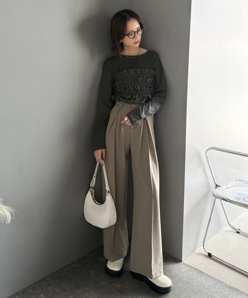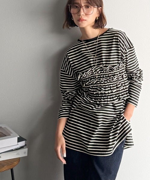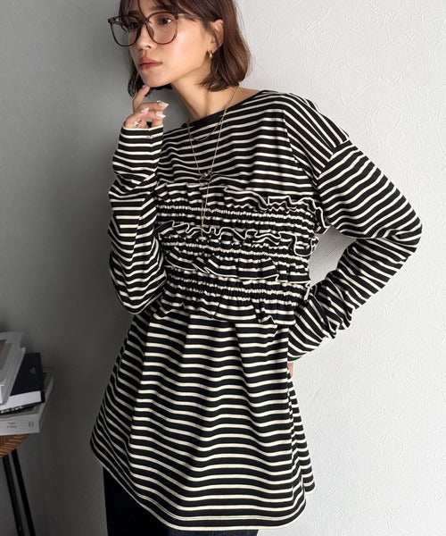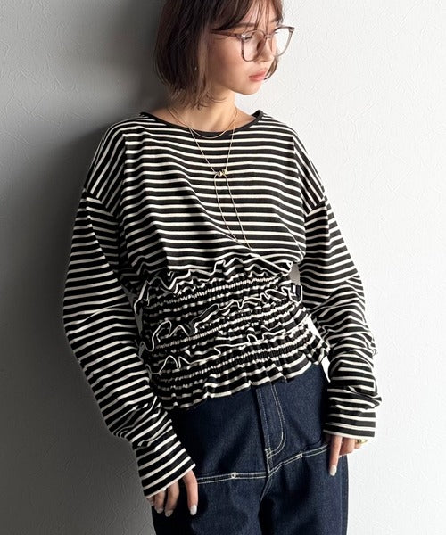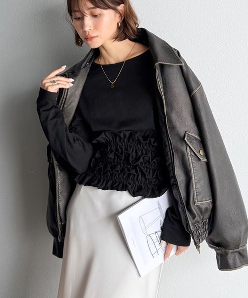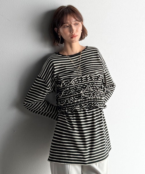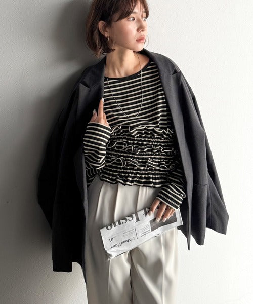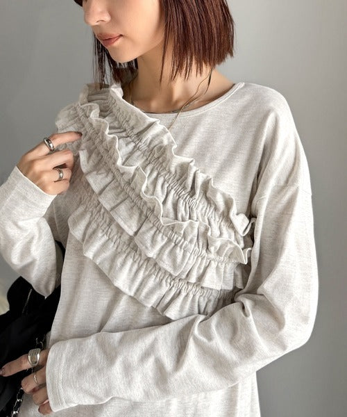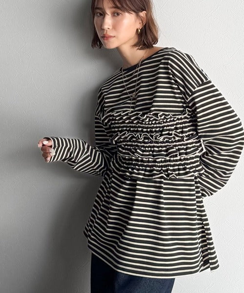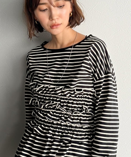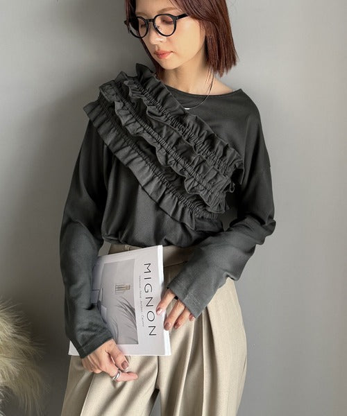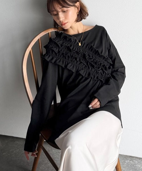甘すぎない大人なフェミニン◎フリルビスチェベルトセットカットソートップス(長袖) ce1050330