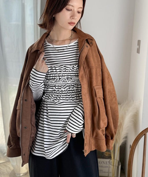 【素材】  【長袖Tシャツ】ポリエステル66%、綿34% 【ビスチェ】本体:ポリエステル66%、綿34% シャーリング部分:ポリエステル100%