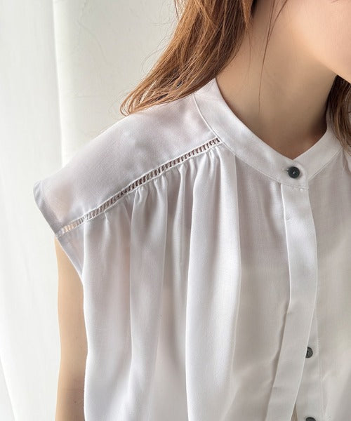 清楚感に大人の甘さをプラス。リボンヘムクロップドギャザーブラウス(ショート丈) ce1070134