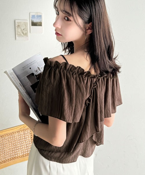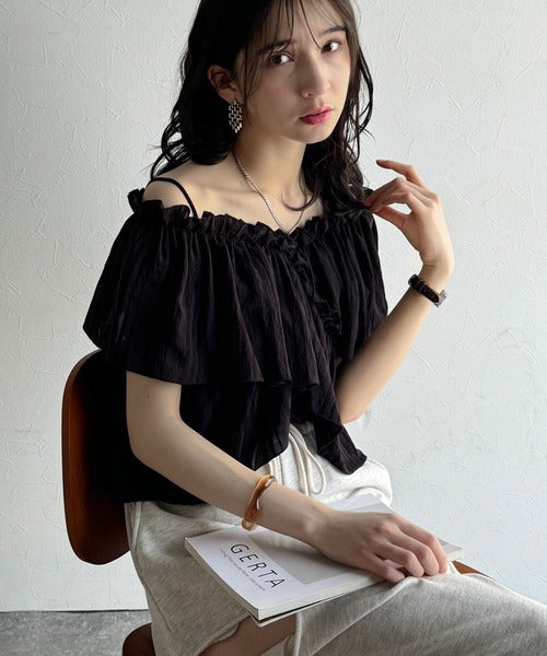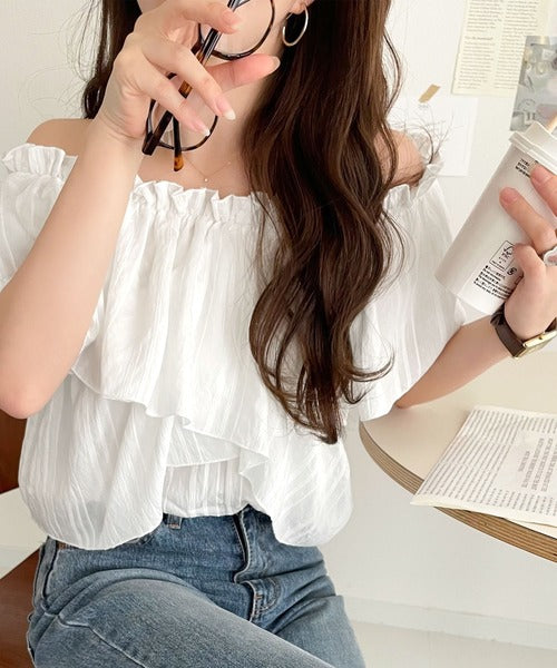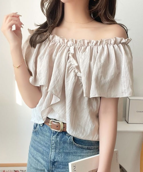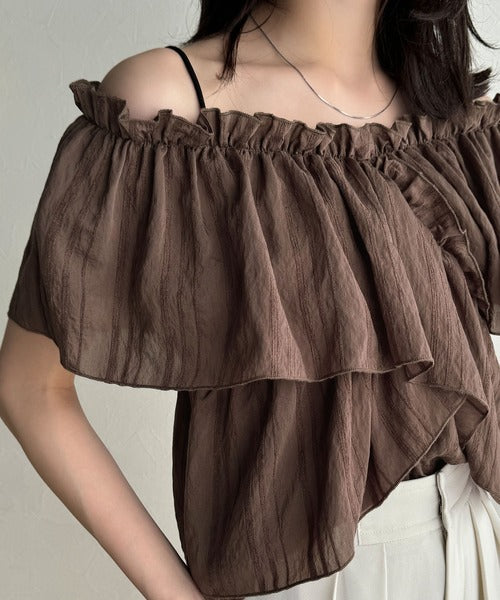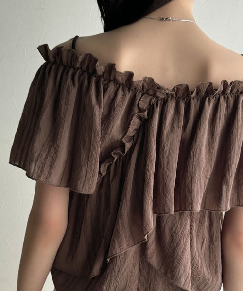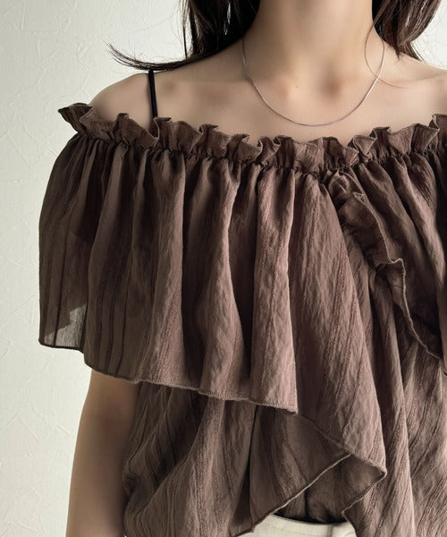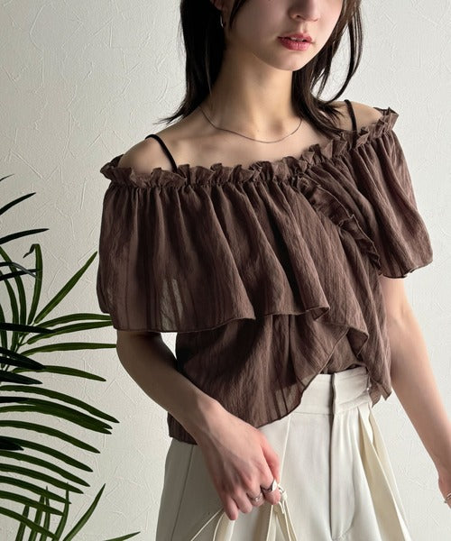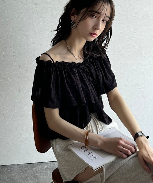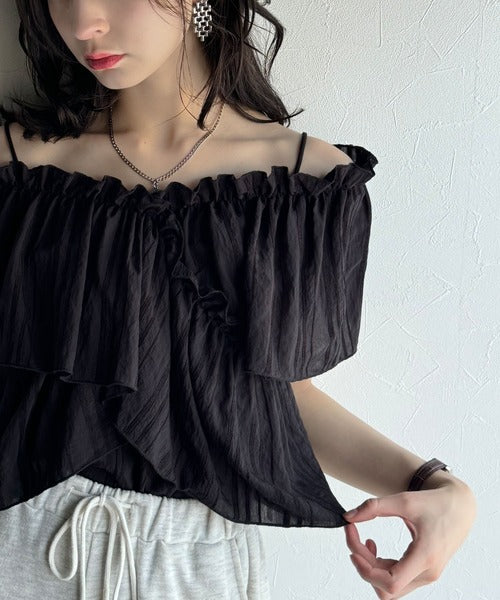 大人ガーリーに見せる。2wayオフショルフリルデザインシアーブラウス ce1070139