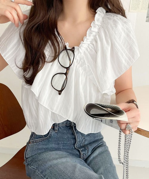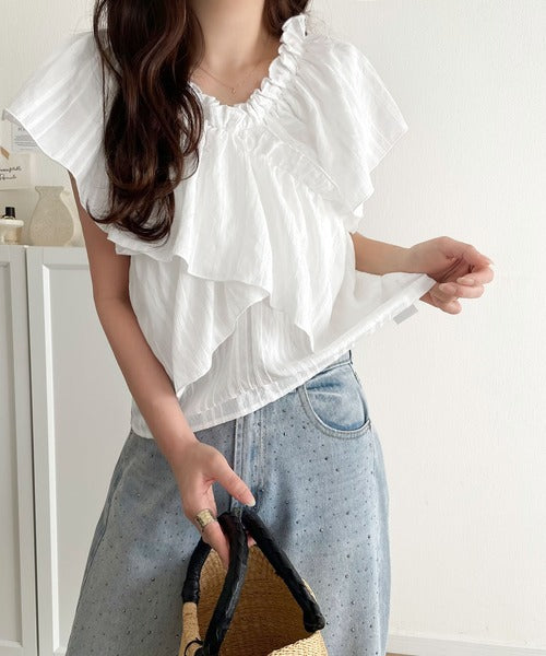 1枚で女性らしさを引き立てるこのブラウスは春夏コーデに1着は欲しいアイテム!