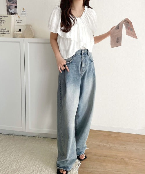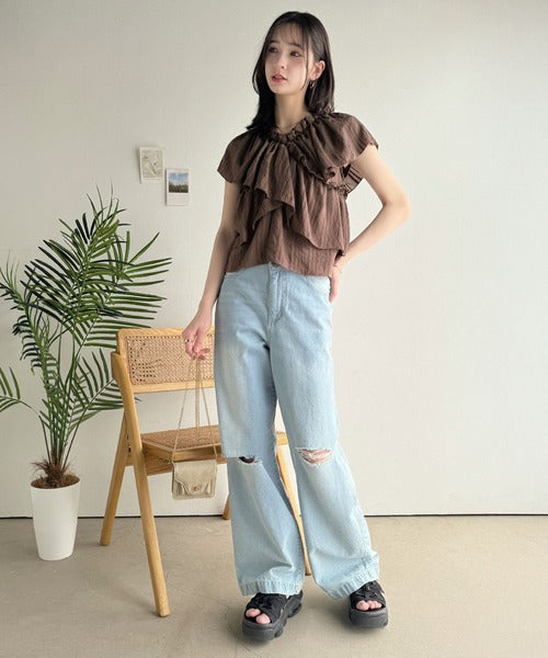 甘めなガーリースタイルはもちろん、デニムと合わせたカジュアルコーデもおすすめ。