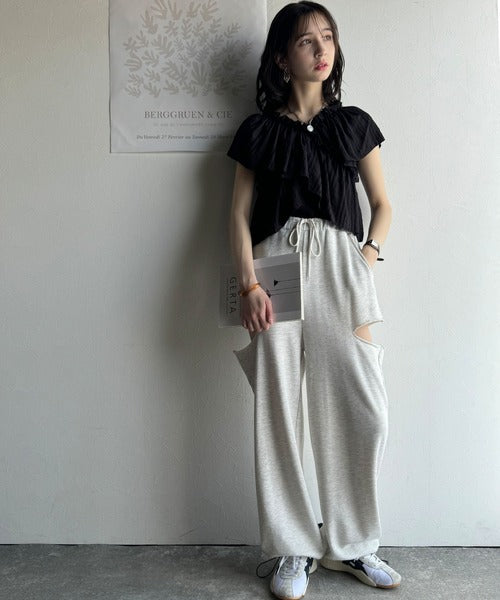 シアーシャツやニットカーディガンを合わせれば、お出かけにもピッタリ◎