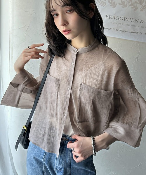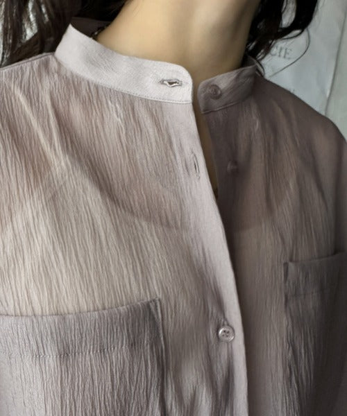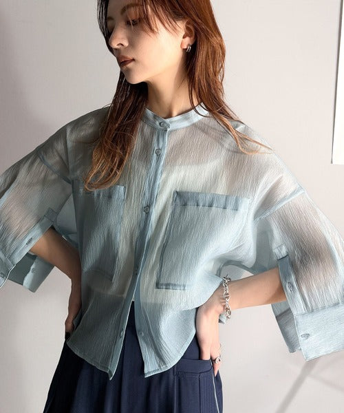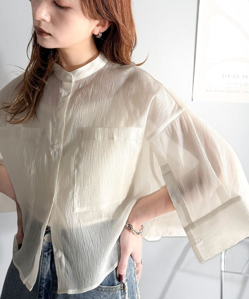 ゆるっと大人の余裕。ワイドハーフスリーブシアーバンドカラーショートシャツ(半袖) ce1110098