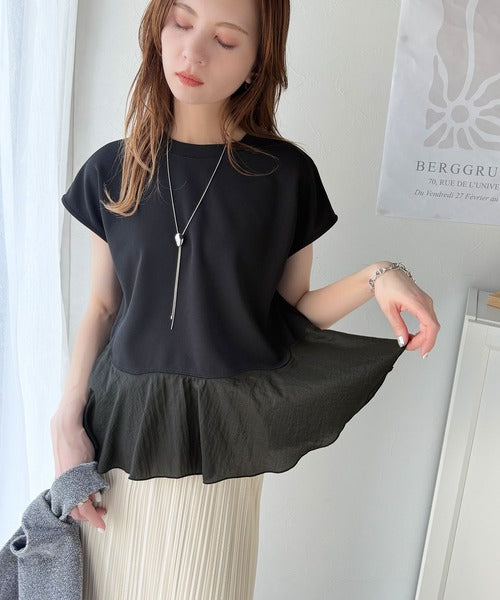 ・カットソー素材×裾シアーナイロンの異素材mix
