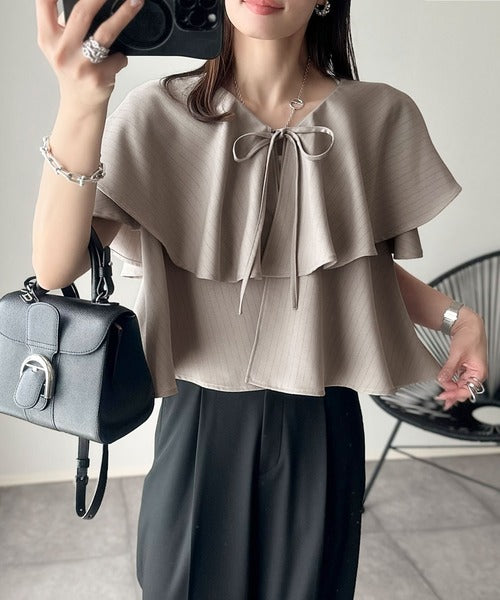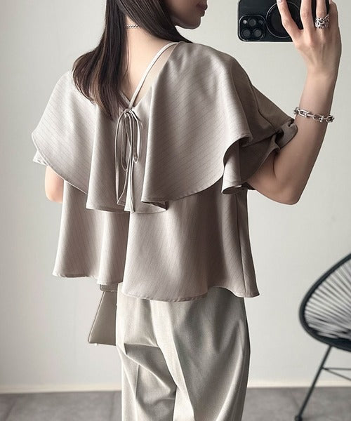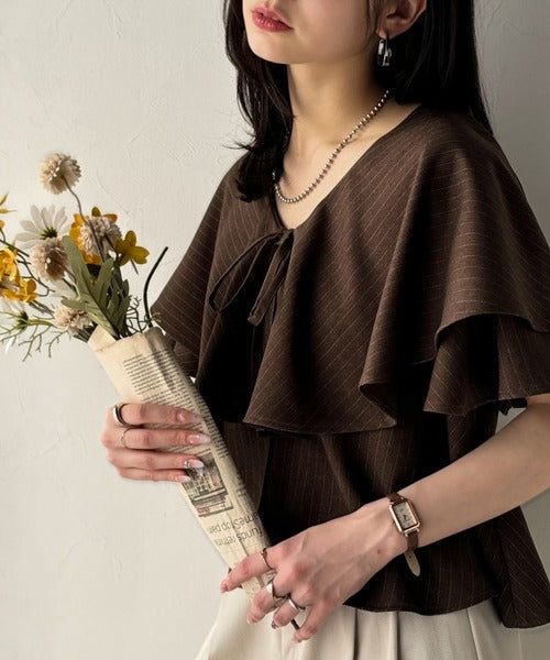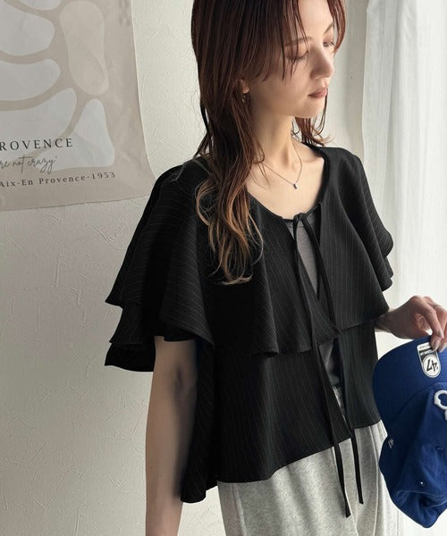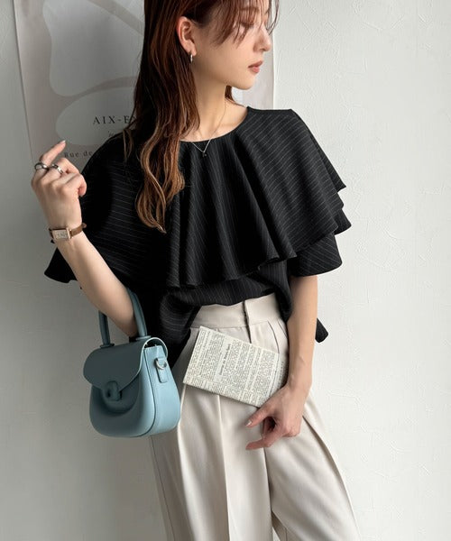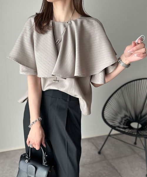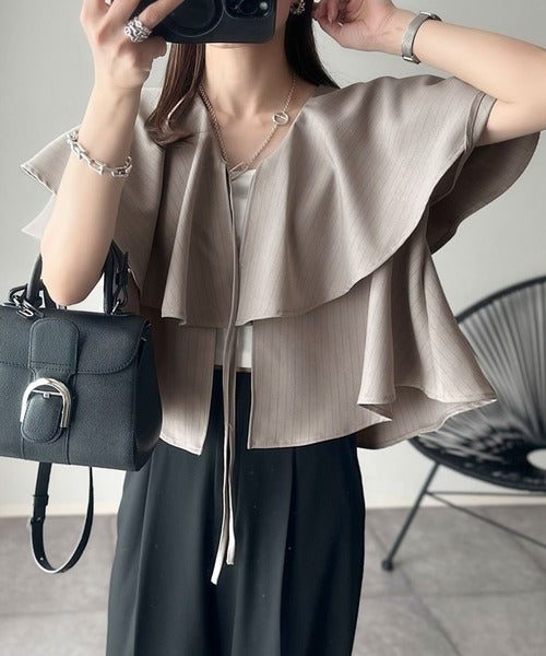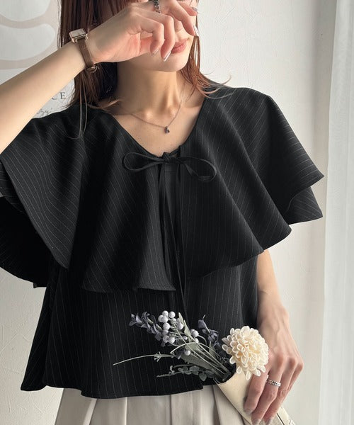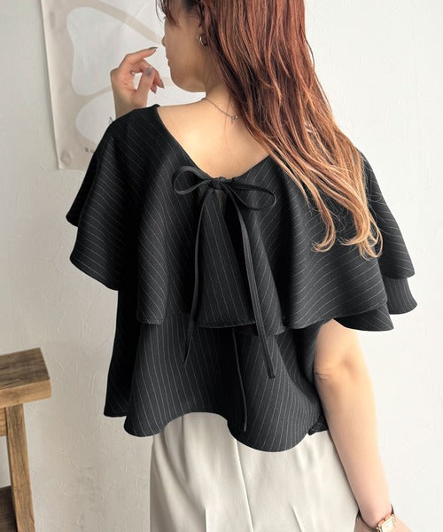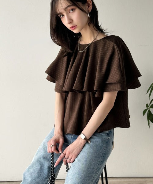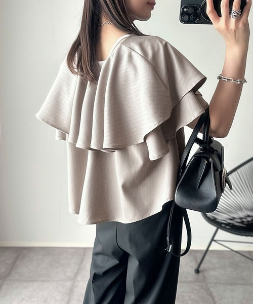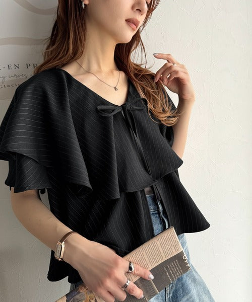 動くたび華やかに揺れる。前後2wayフリル襟ストライプシャツ(半袖) ce1110118