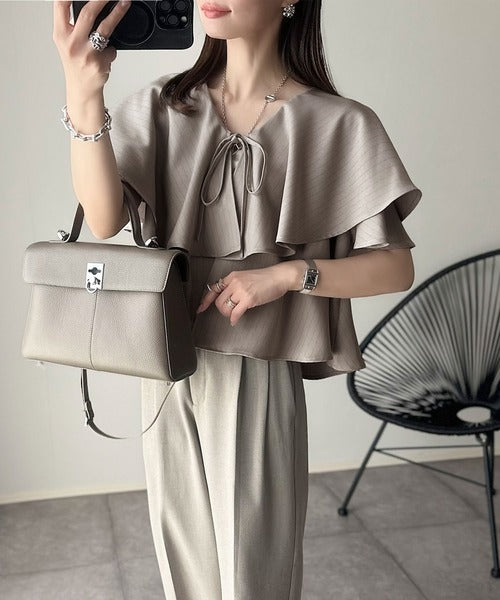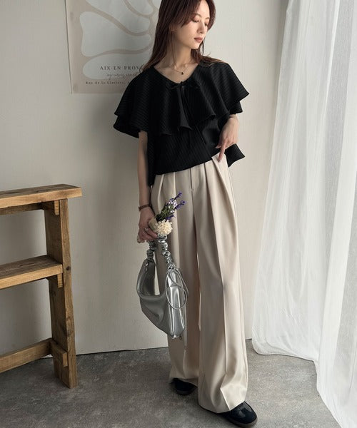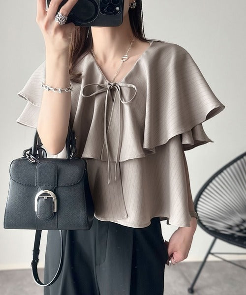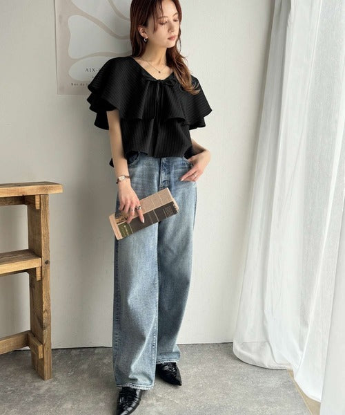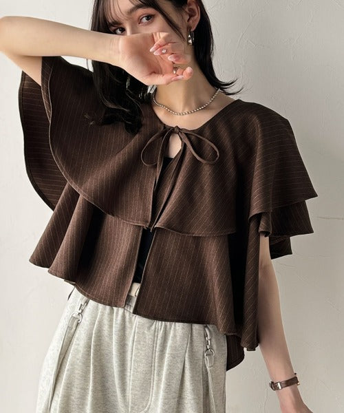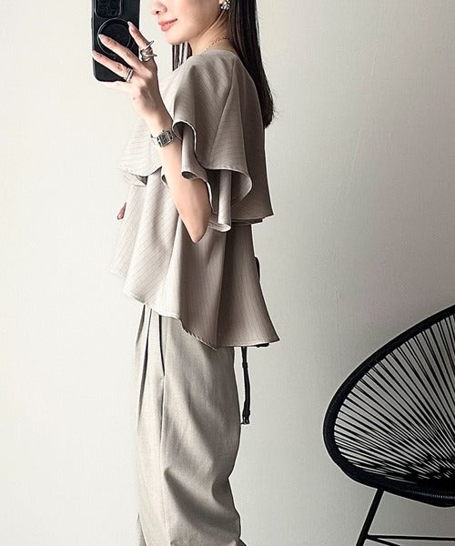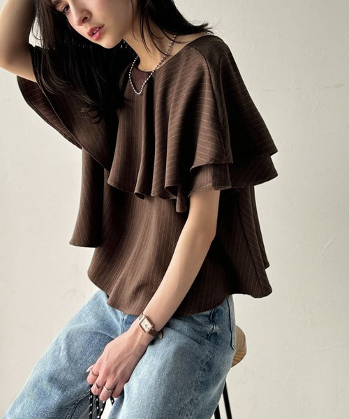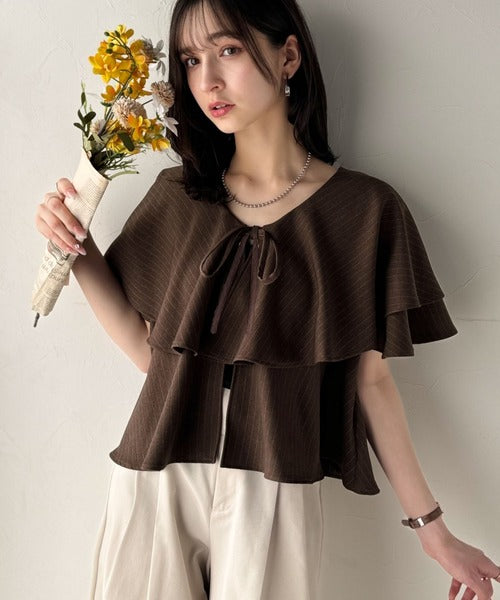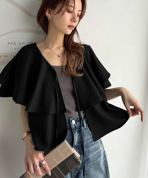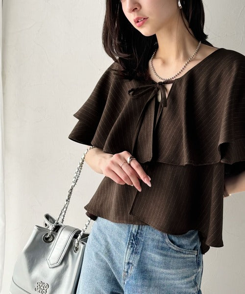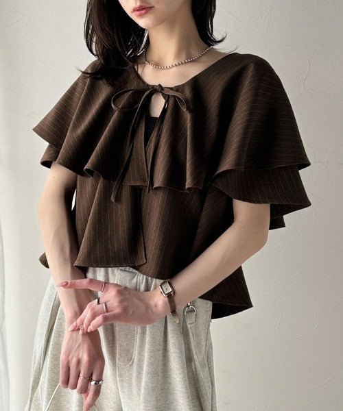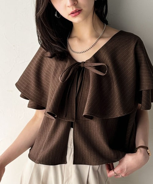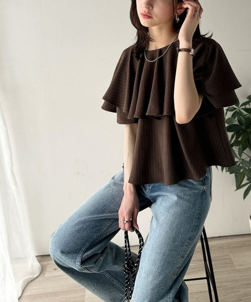 動くたび華やかに揺れる。前後2wayフリル襟ストライプシャツ(半袖) ce1110118