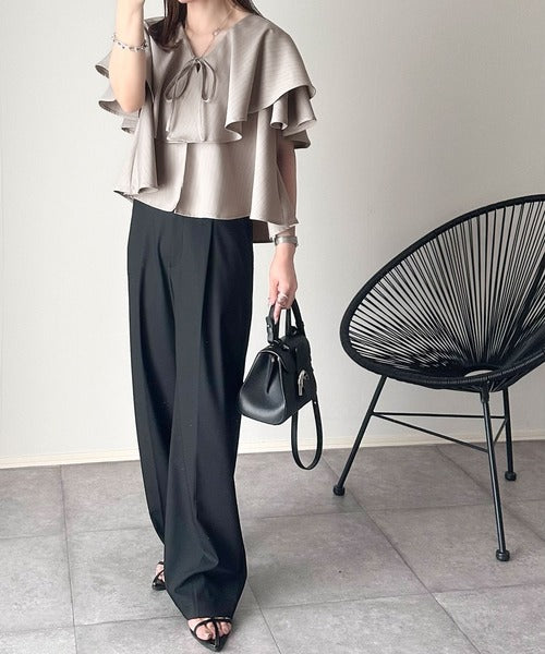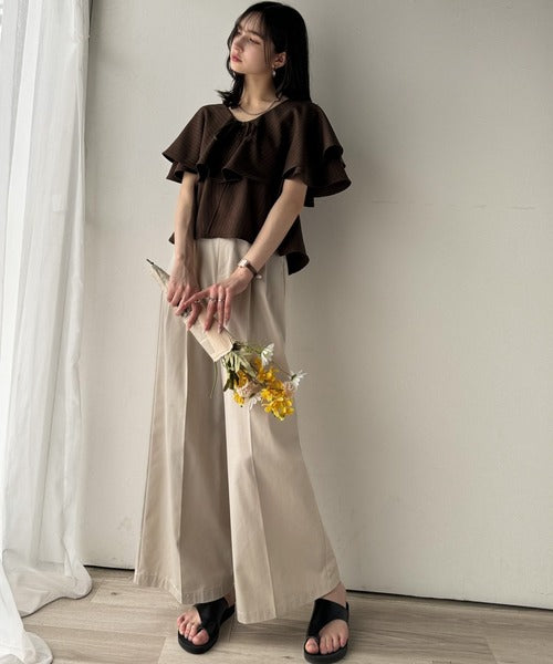 たっぷりとしたラッフルが動きに合わせて揺れ、ふんわりと華やかな印象を演出。