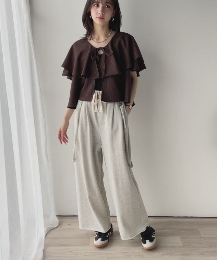 甘めのデザインとクラシックなピンストライプが絶妙にミックスされていて、どんなシーンでも活躍すること間違いなし!