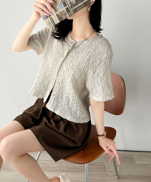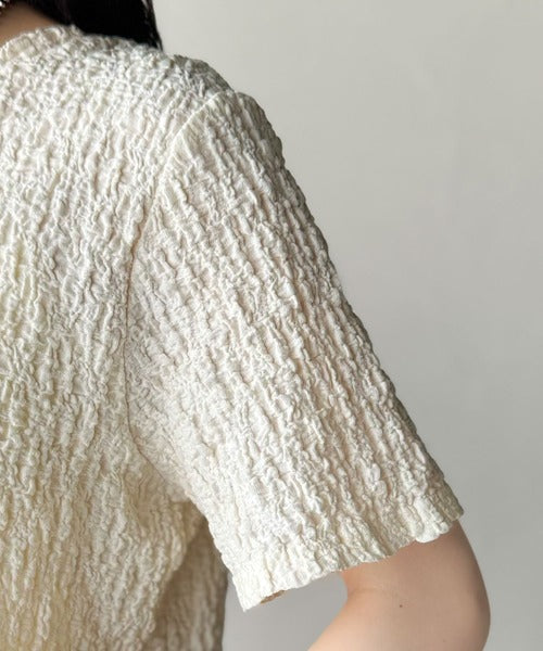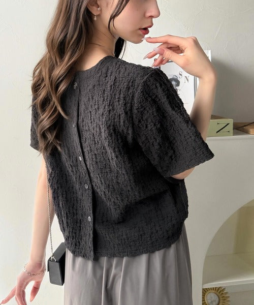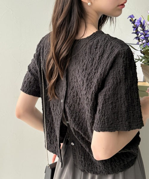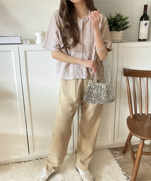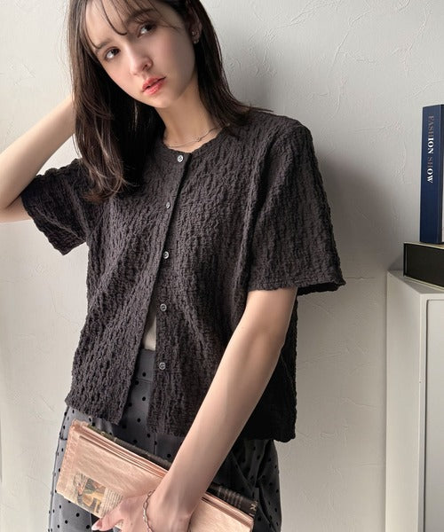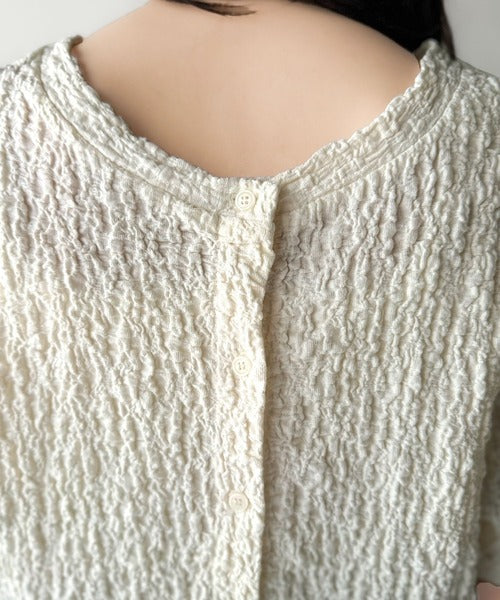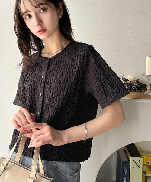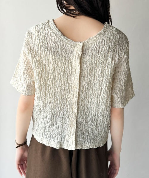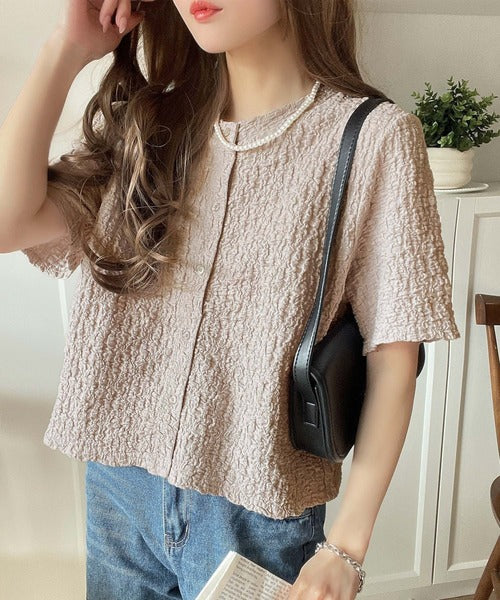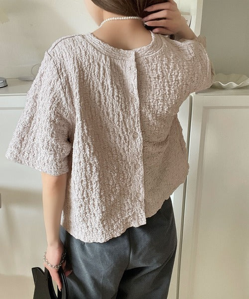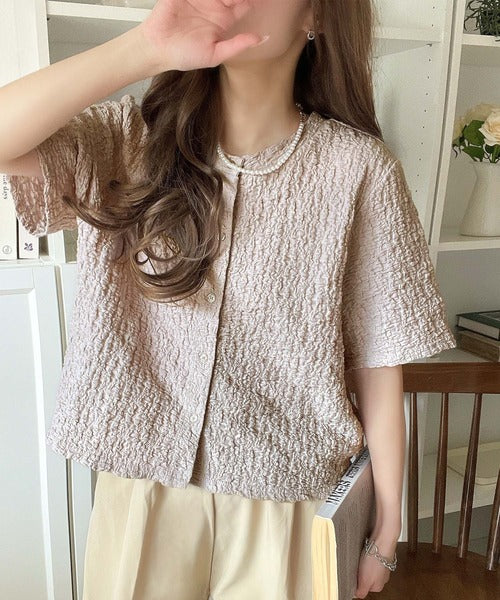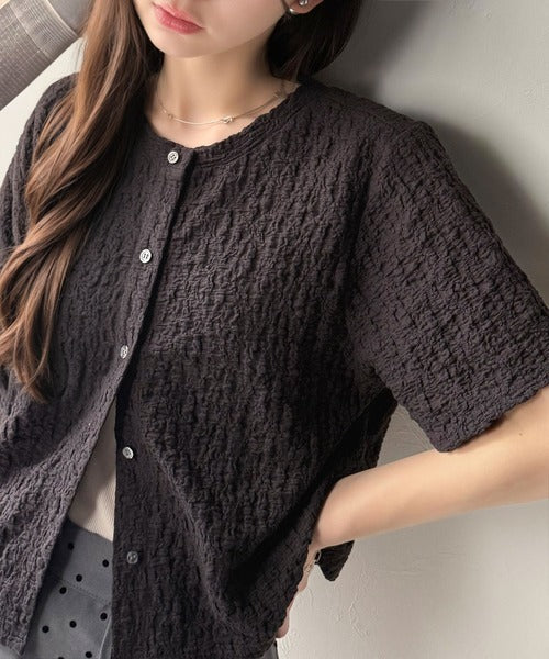 ラフに着てもサマになる!前後2wayクラッシュジャカードノーカラーブラウス(半袖) ce1110122