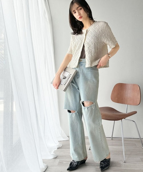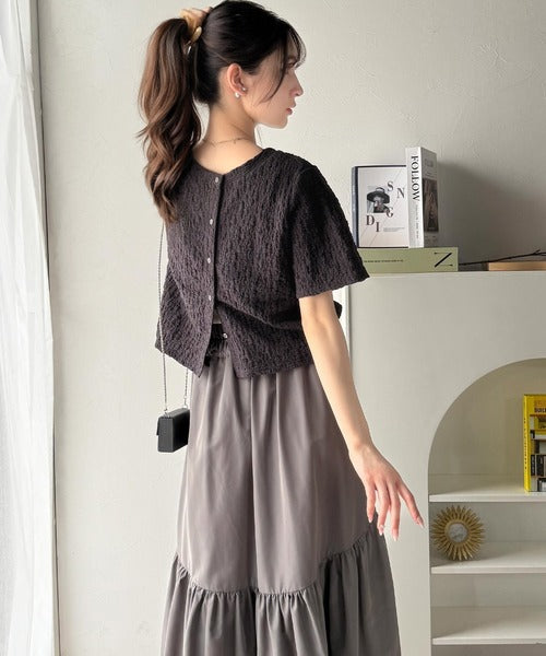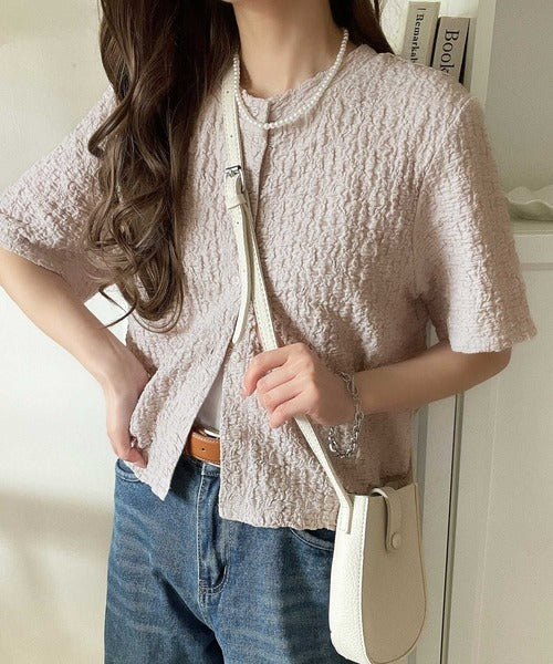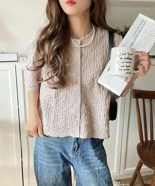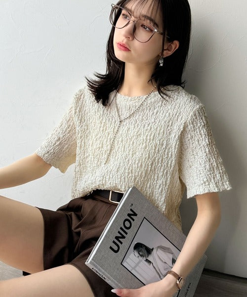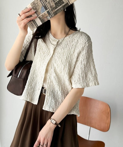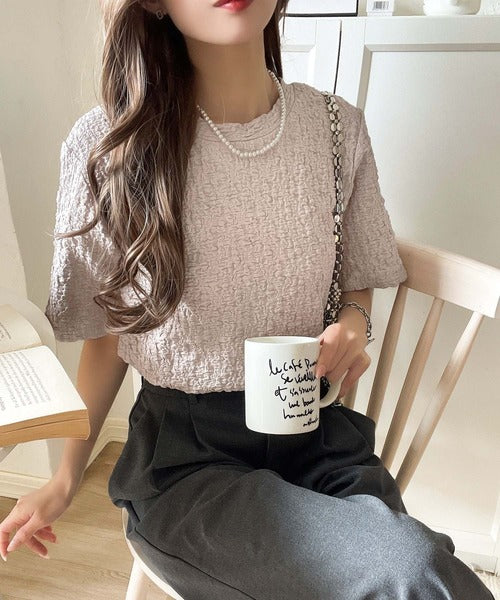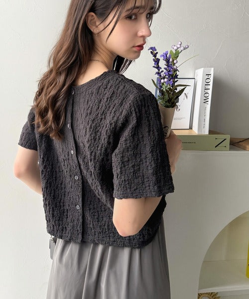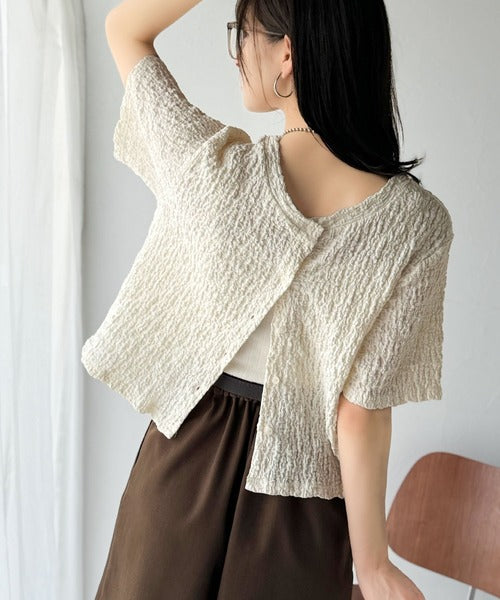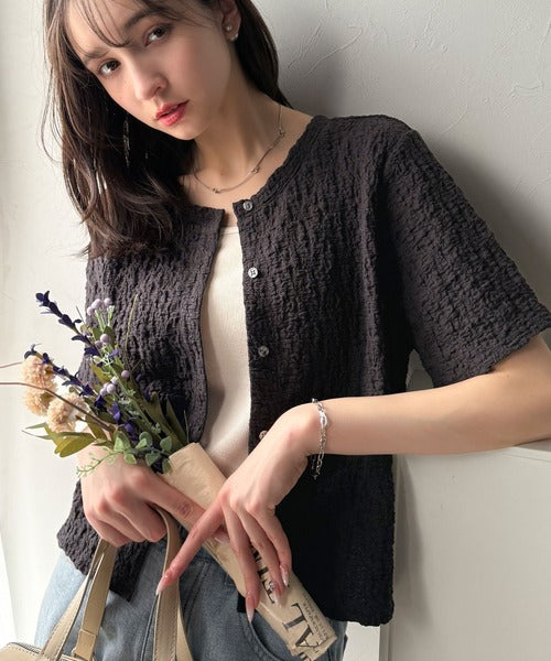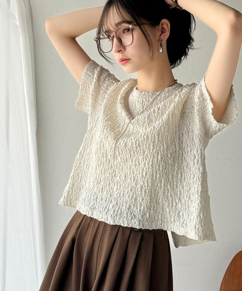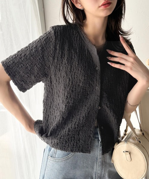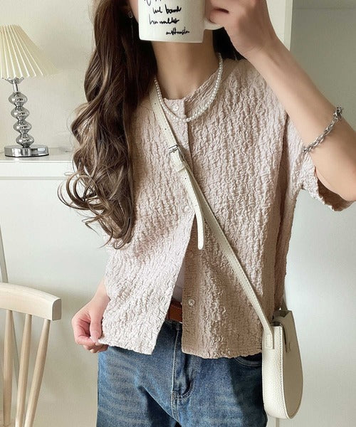 ラフに着てもサマになる!前後2wayクラッシュジャカードノーカラーブラウス(半袖) ce1110122