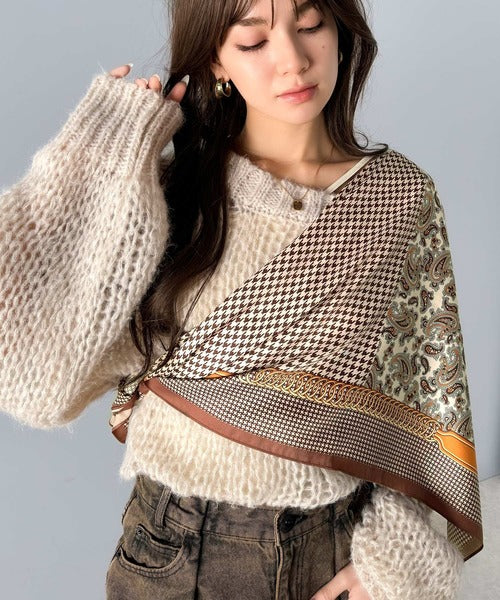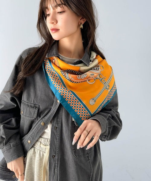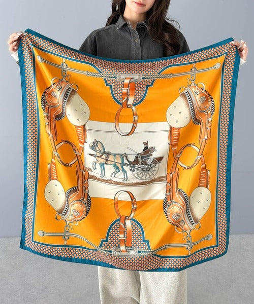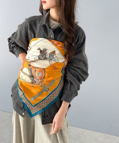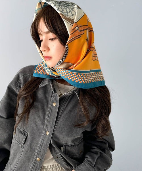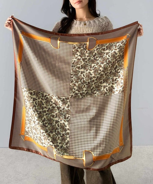 大人の女性の魅力を引き立てる、クラシカルなパネル柄スカーフ。