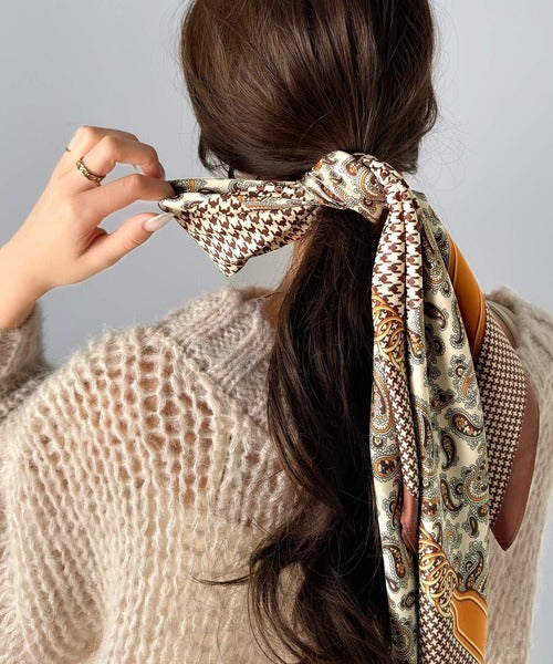 首元やヘアアレンジ、バッグに巻いて、様々なスタイルを楽しめます。