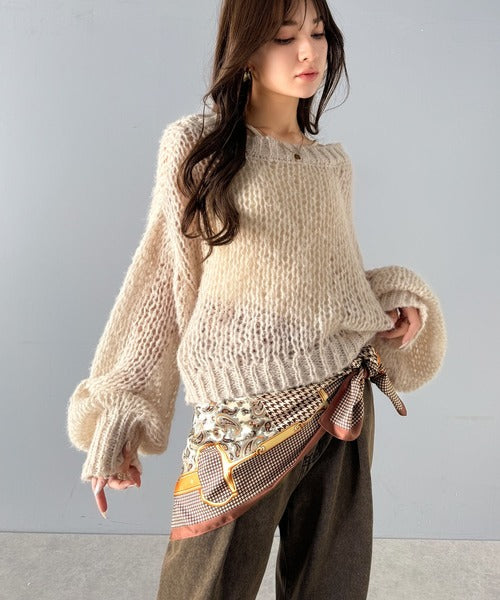 秋冬には、シャギーニットに合わせて首元を覆い、ケープコートを羽織れば、シックな大人カジュアルに。