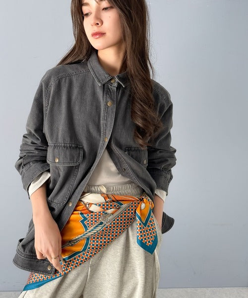 デニムとの相性も抜群。ハーフジップのトップスに合わせて、スカーフをレイヤードすれば、上品な大人カジュアルを演出します。