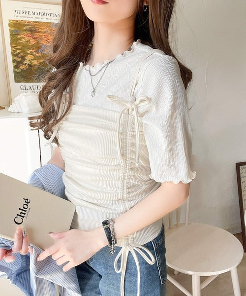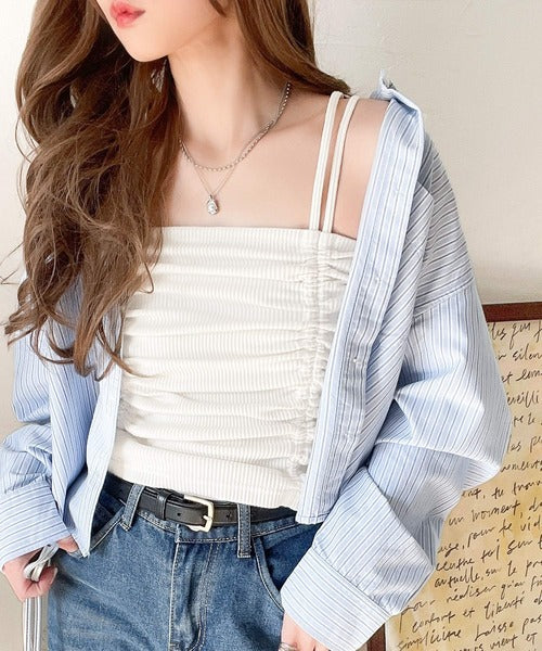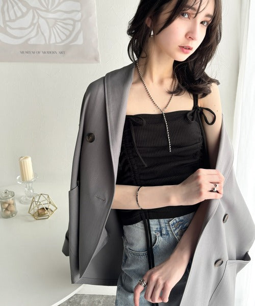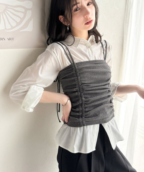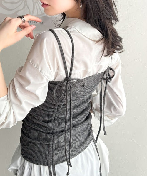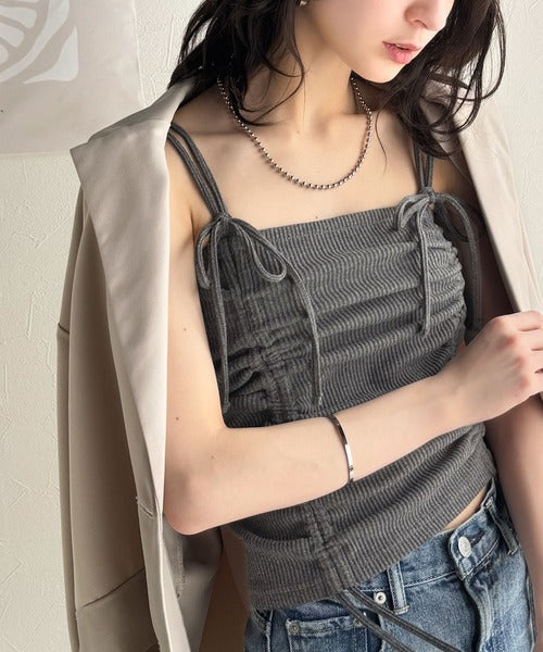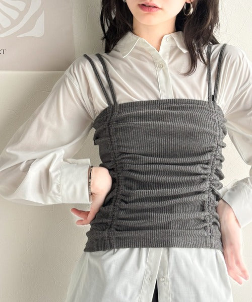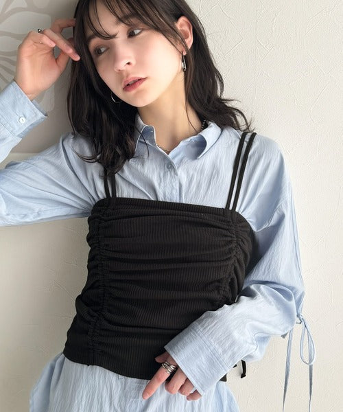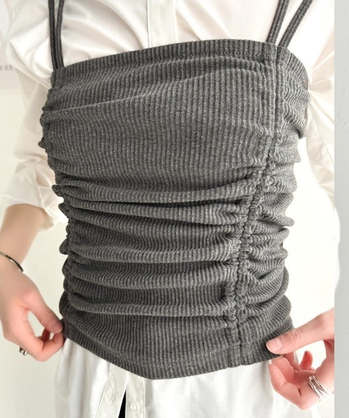 マルチwayで楽しめるリブ素材のドロストビスチェキャミソール。