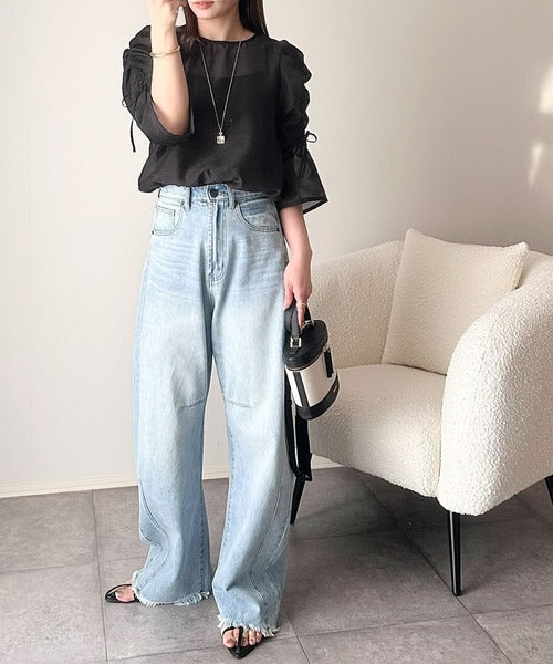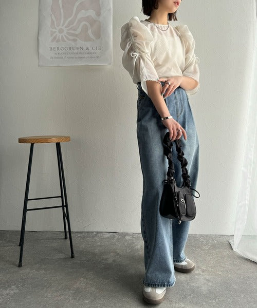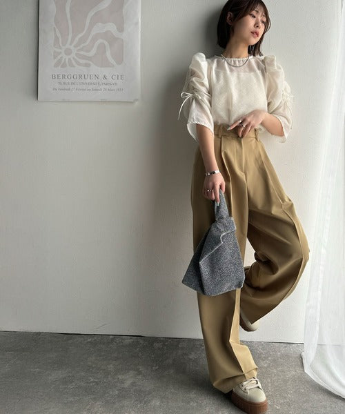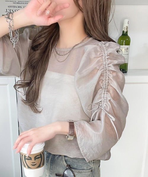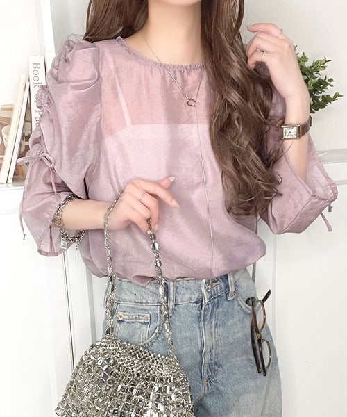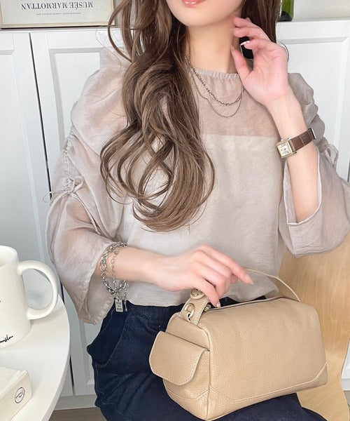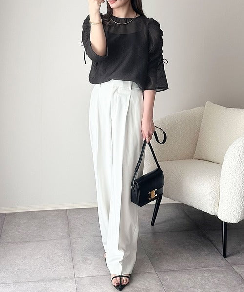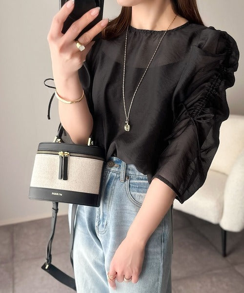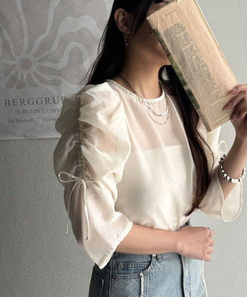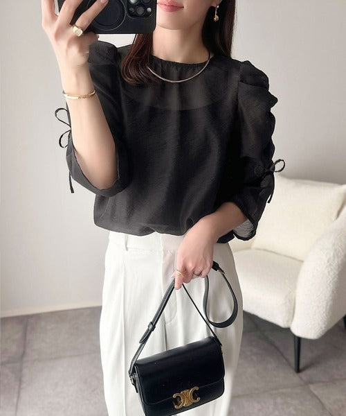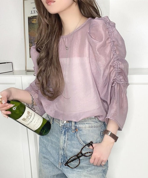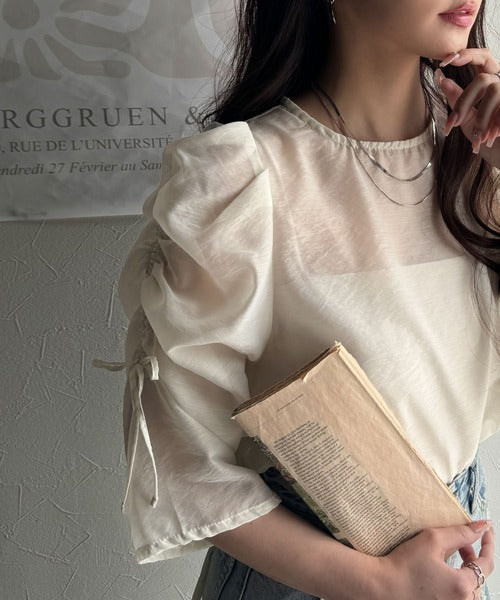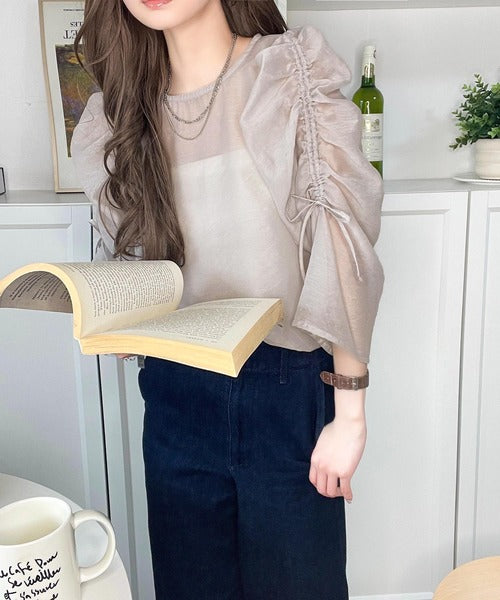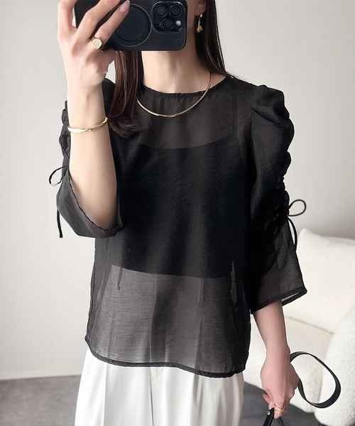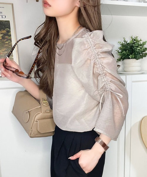 動きに合わせて表情を変えるオーガンジー素材が魅力のブラウス。